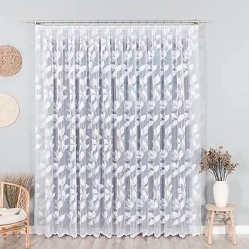 Firany ze wzorem po całości: kwiatowym, łączka, liście