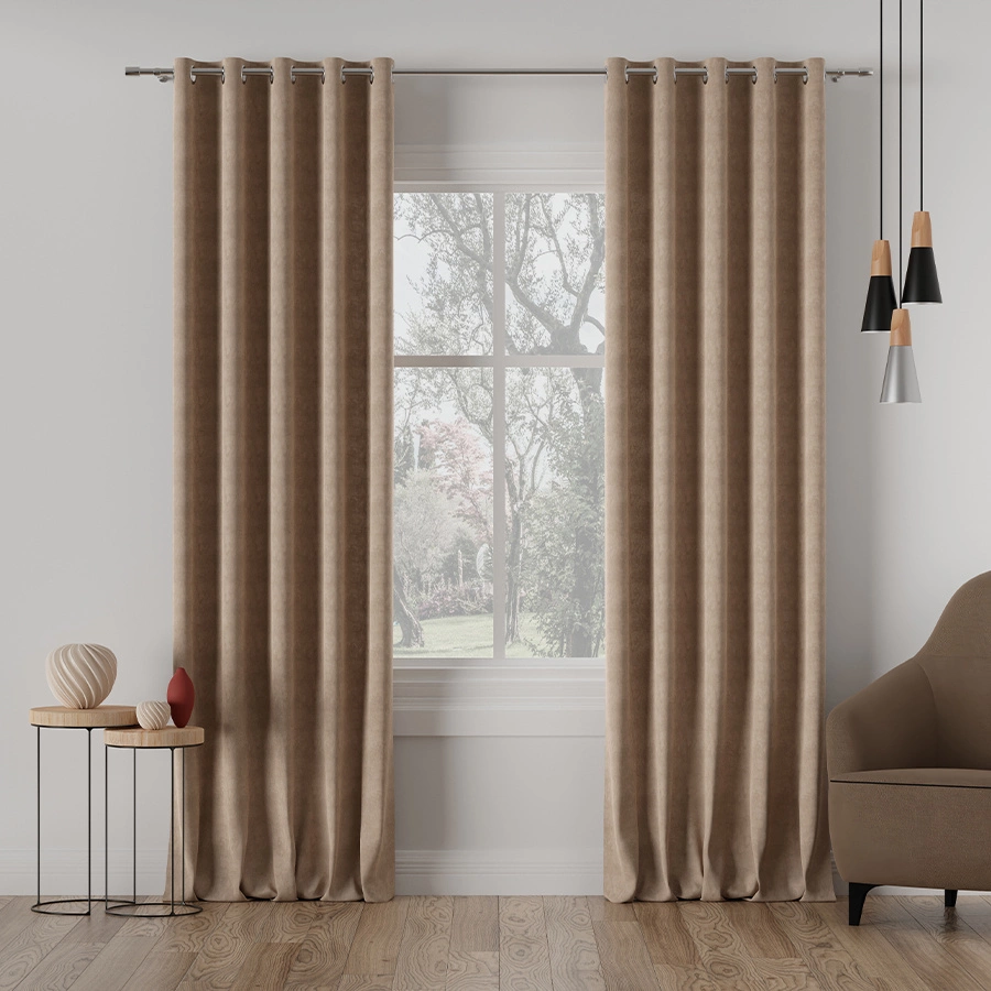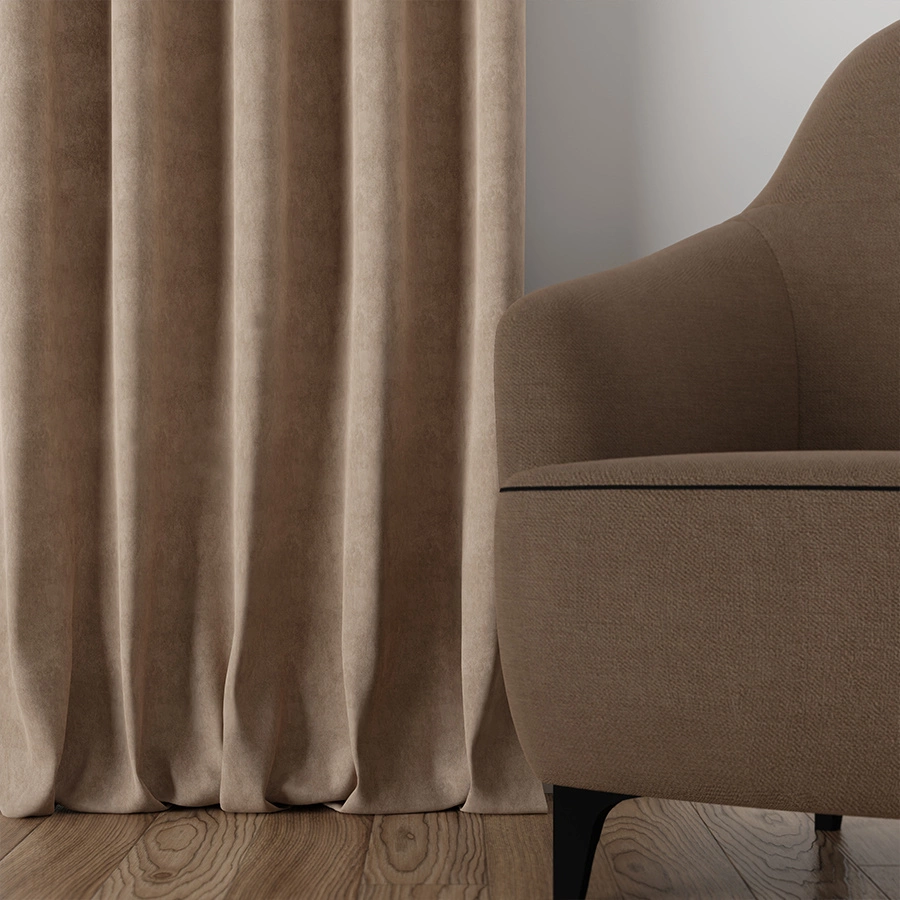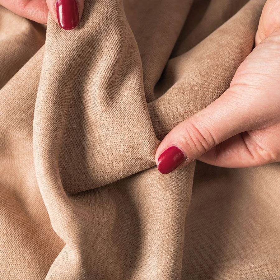 Jednokolorowa tkanina typu "welur", niezwykle miła i przyjemna w dotyku. Jest miękka i lejąca, bardzo dobrze się układa, idealna na zasłony, obicia, poszewki itp.