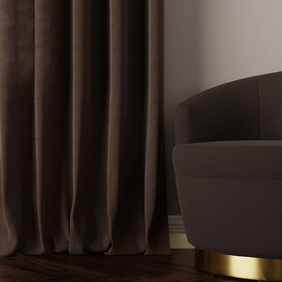 Jednokolorowa tkanina typu "welur", niezwykle miła i przyjemna w dotyku. Jest miękka i lejąca, bardzo dobrze się układa, idealna na zasłony, obicia, poszewki itp.