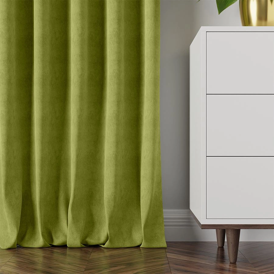 Jednokolorowa tkanina typu "welur", niezwykle miła i przyjemna w dotyku. Jest miękka i lejąca, bardzo dobrze się układa, idealna na zasłony, obicia, poszewki itp.