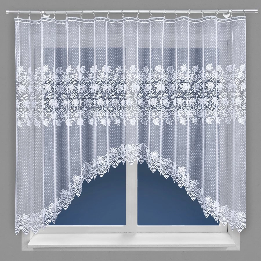 Firanka gotowa, żakardowa z efektownym poprzecznym wzorem. Idealnie sprawdzi się w kuchni, jadalni czy klasycznym pokoju.