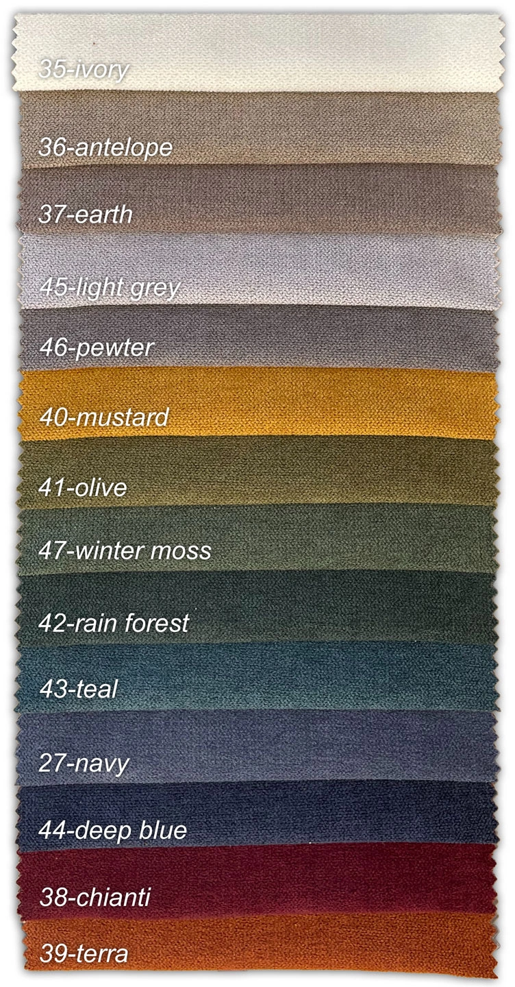 Elegancka tkanina zasłonowa, średniej grubości o strukturze weluru, jest miękka i lejąca, bardzo dobrze się układa. Idealna na zasłony, pokrowce, poszewki i obicia tapicerskie