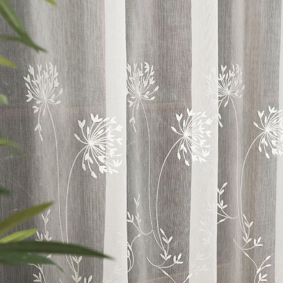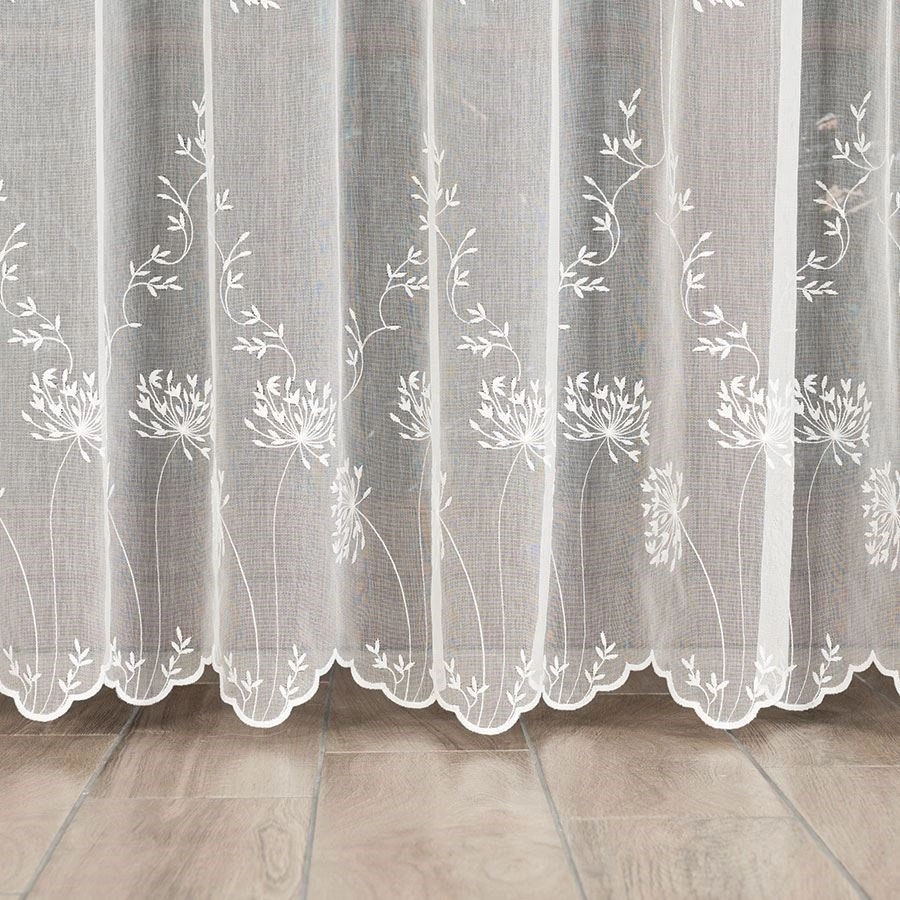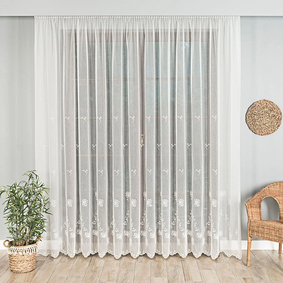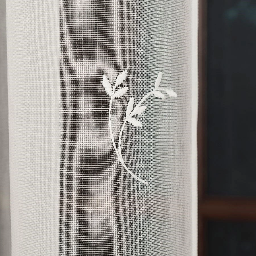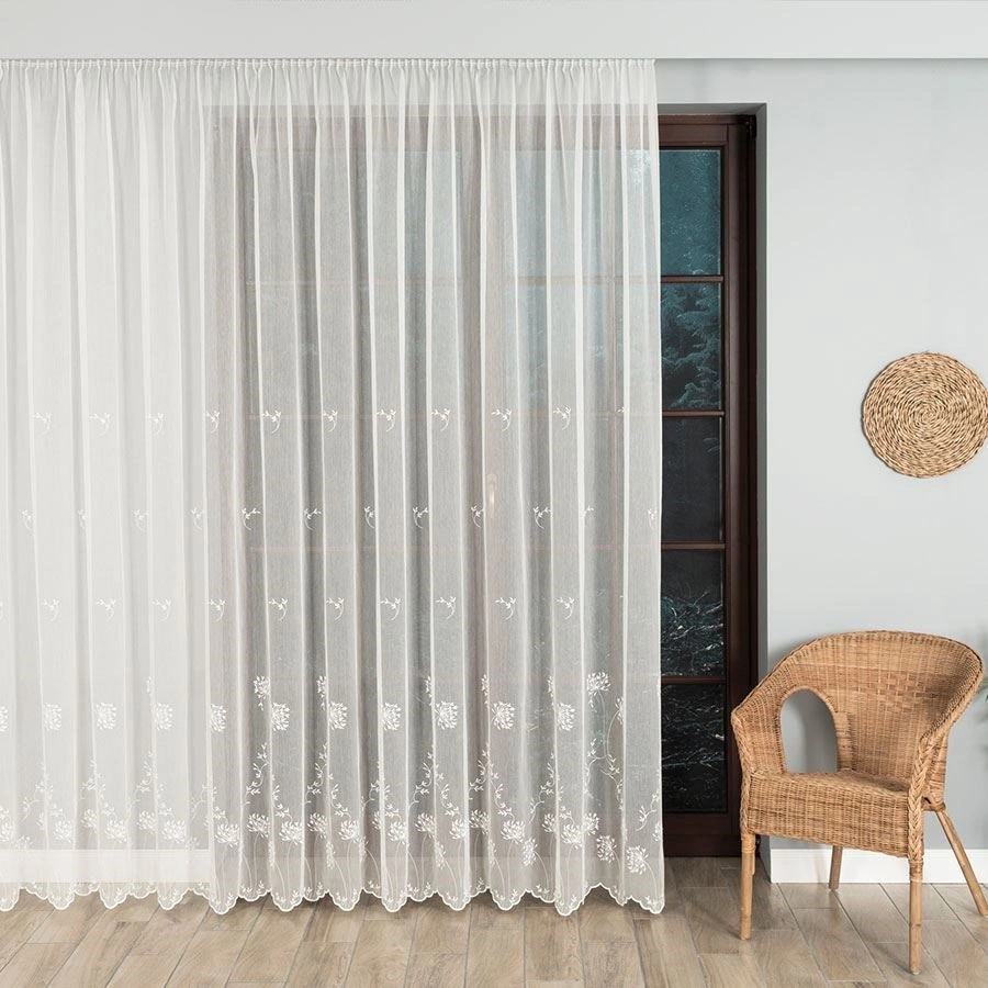 Firanka haftowana z wzorem pasowym 053801 / kolor kremowy / wysokość 280cm