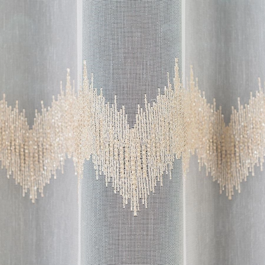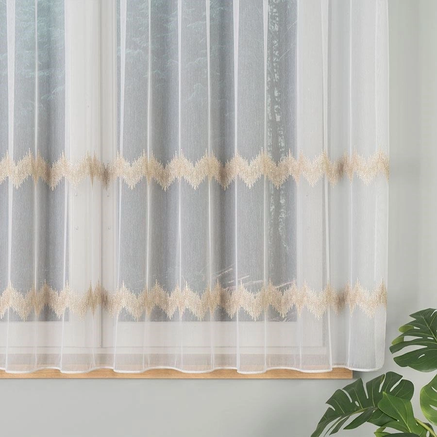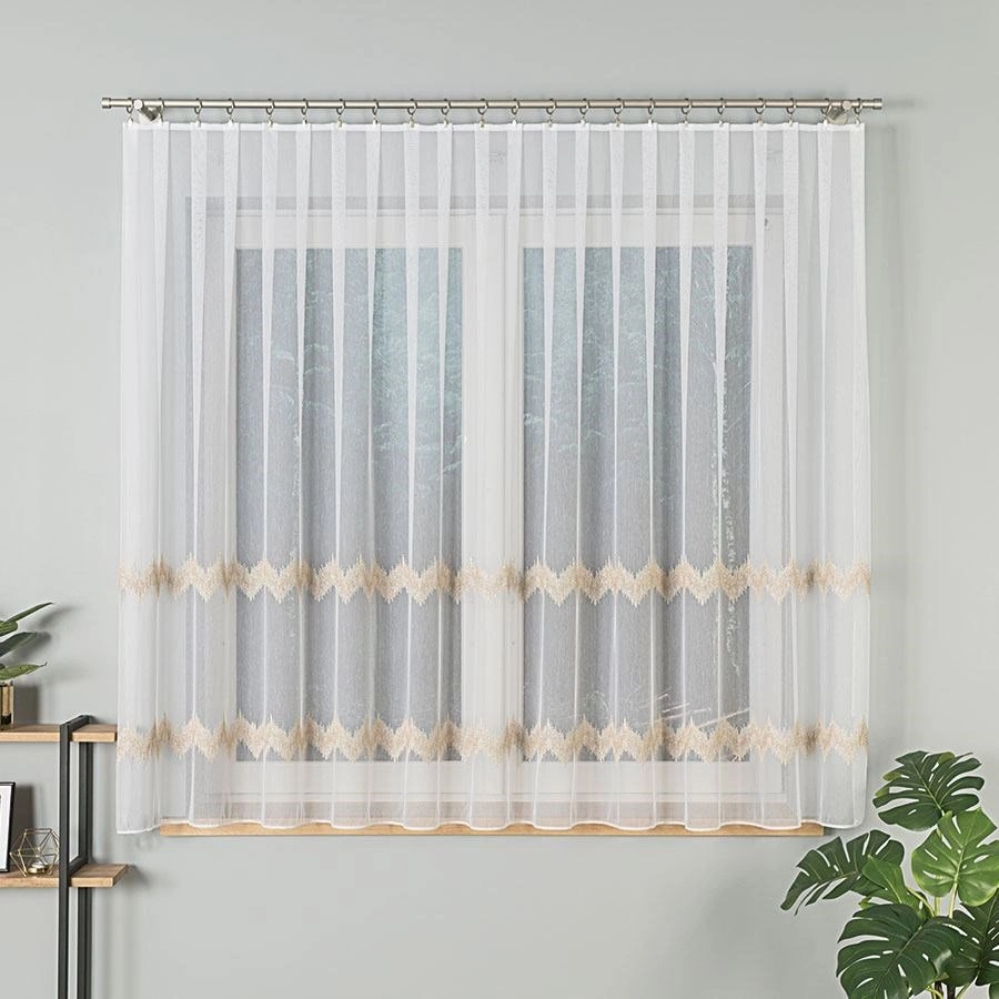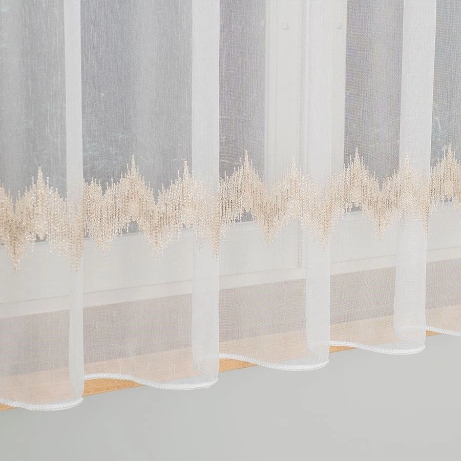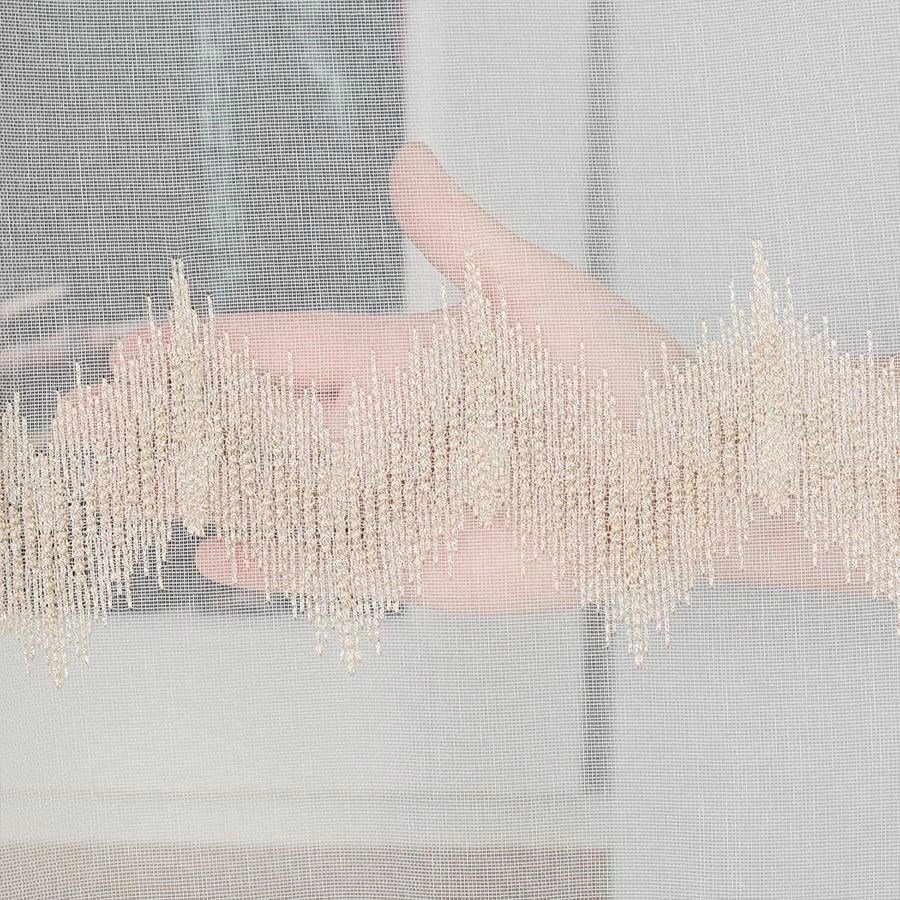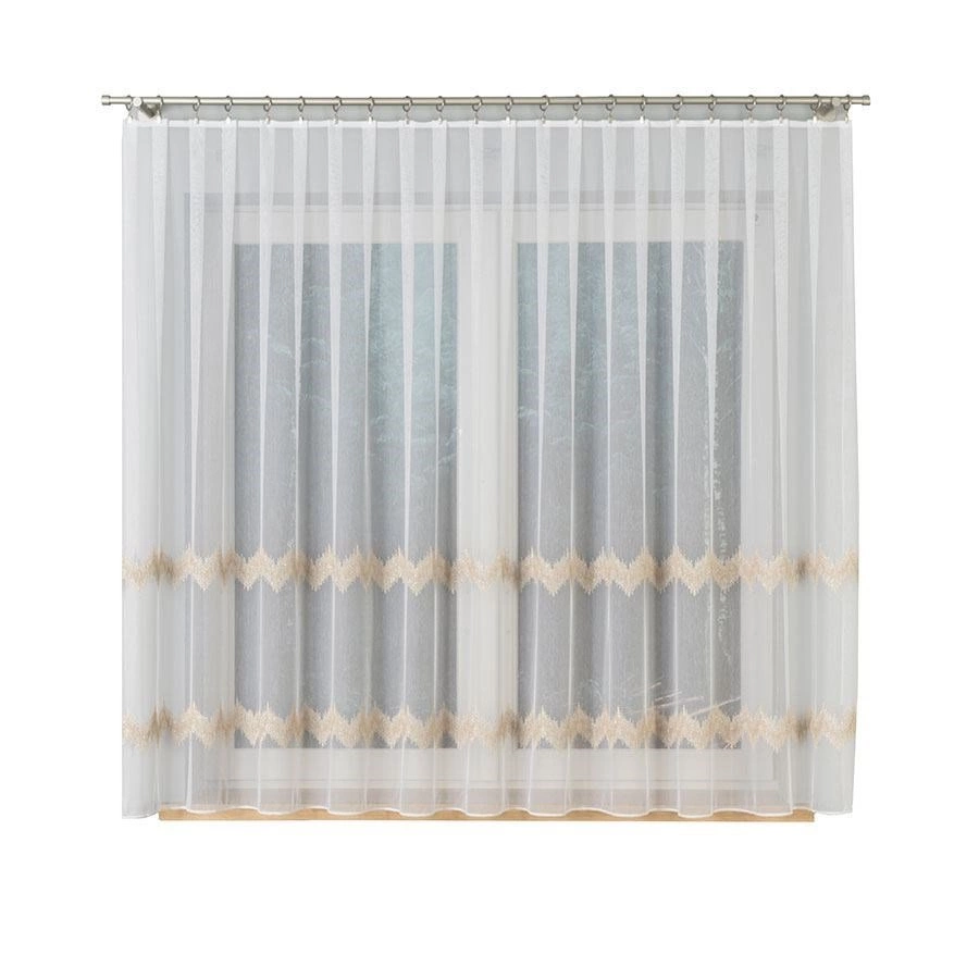 Firanka haftowana z wzorem pasowym 112750 / kolor biały ze złotym / wysokość 160cm