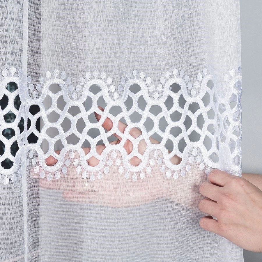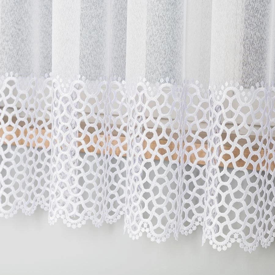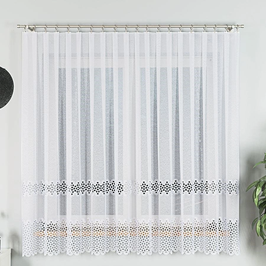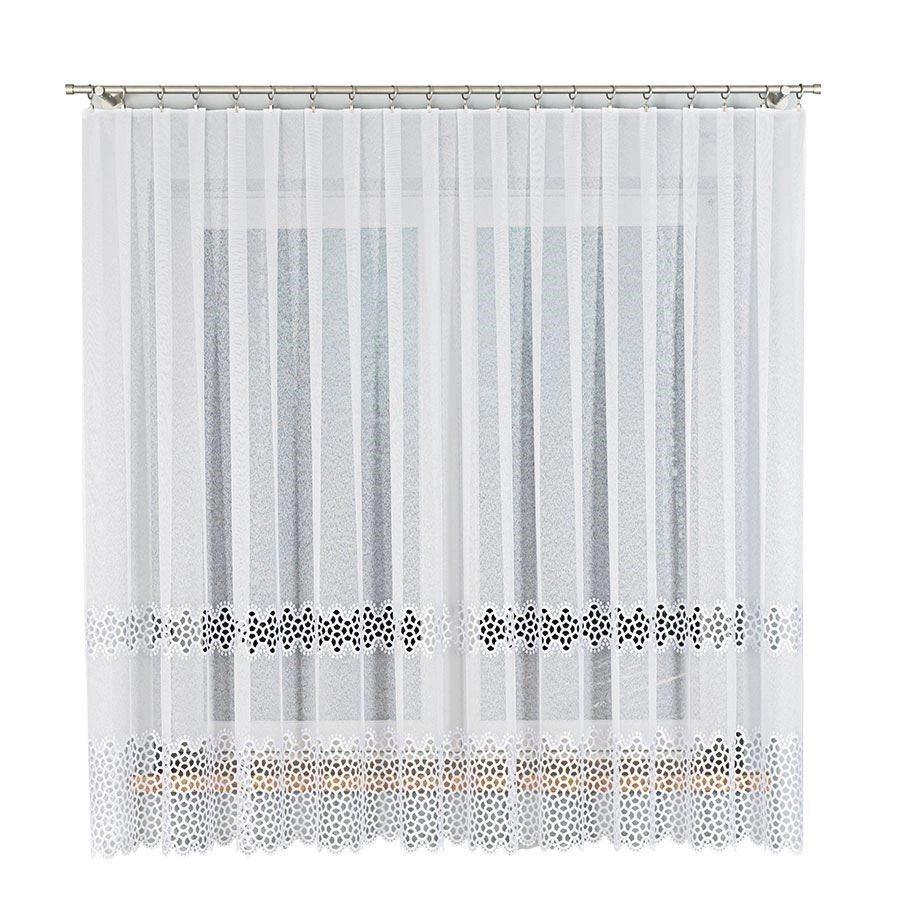 Firanka z aplikacją z wzorem pasowym 008897 / kolor biały / wysokość 175cm