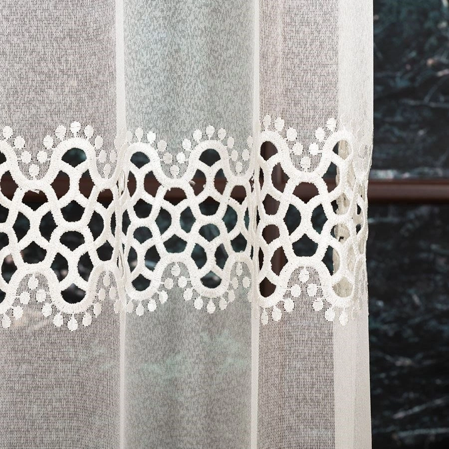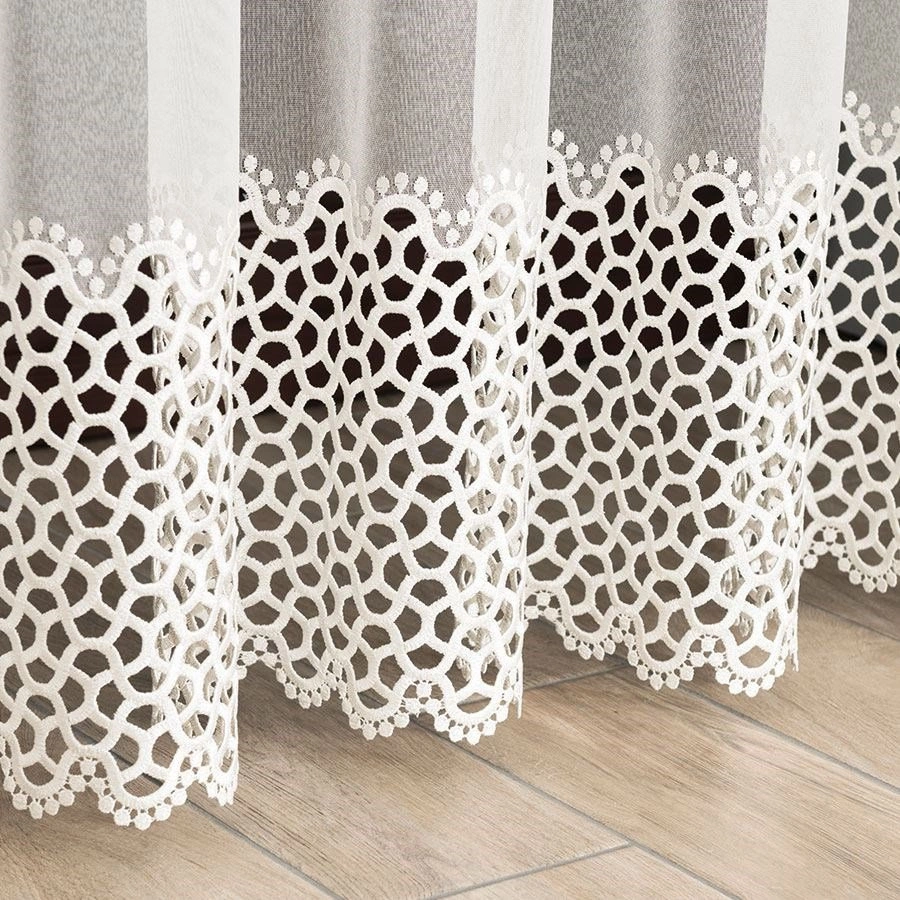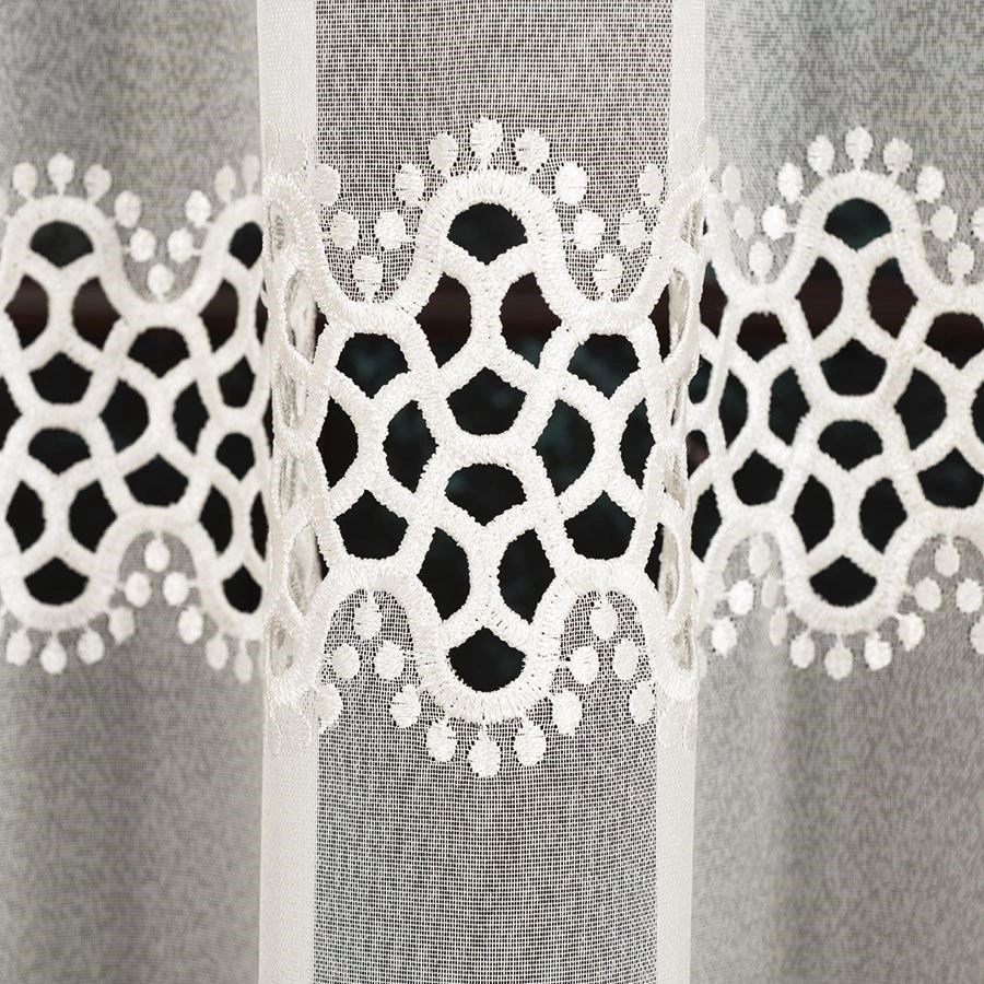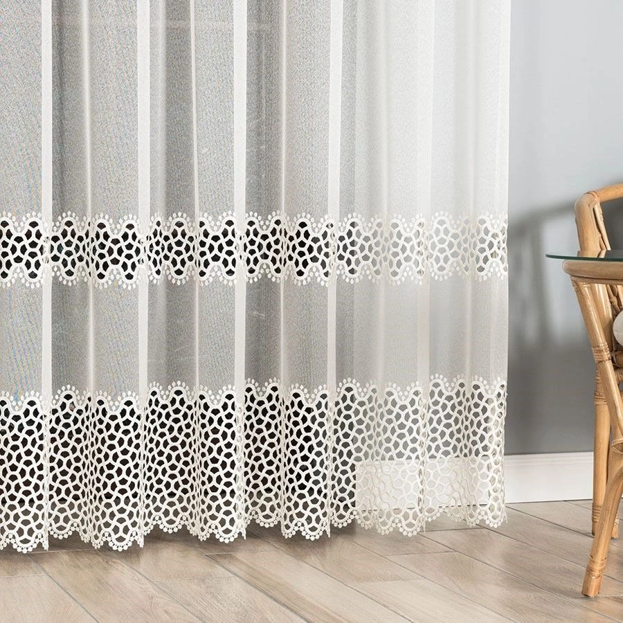 Firanka z aplikacją z wzorem pasowym 008897 / kolor kremowy / wysokość 280cm