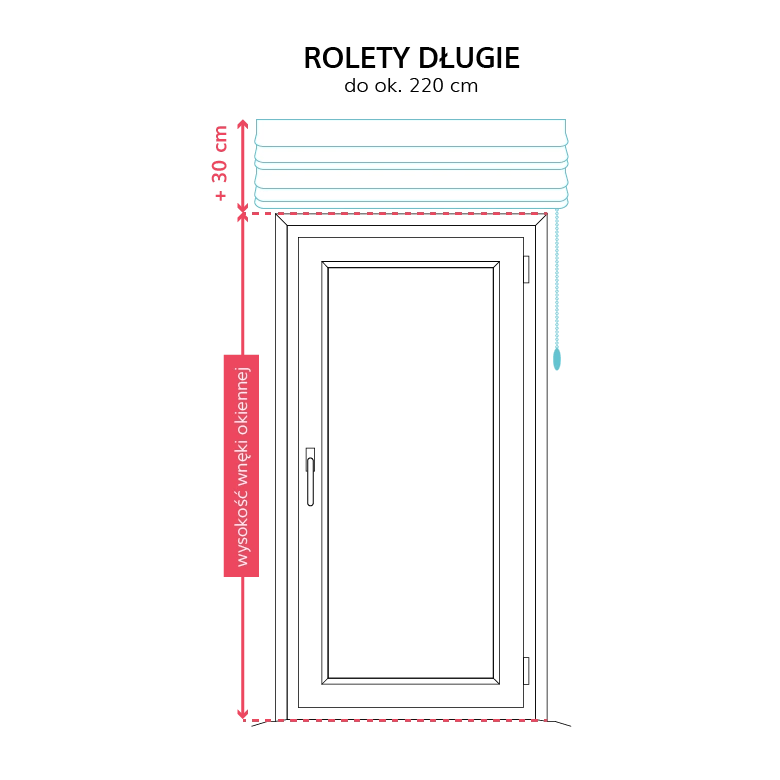 Wysokość na której zawieszamy roletę powinna być odpowiednio dobrana tak aby nie stwarzała problemów z użytkowaniem i dostępem do okna. Podwinięta do góry roleta zajmuje pewną przestrzeń i przy zbyt niskim zamocowaniu może przeszkadzać przy otwieraniu okna.