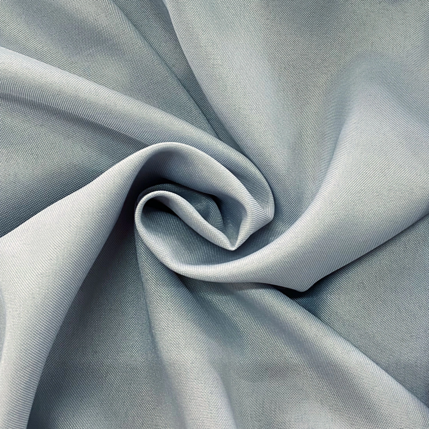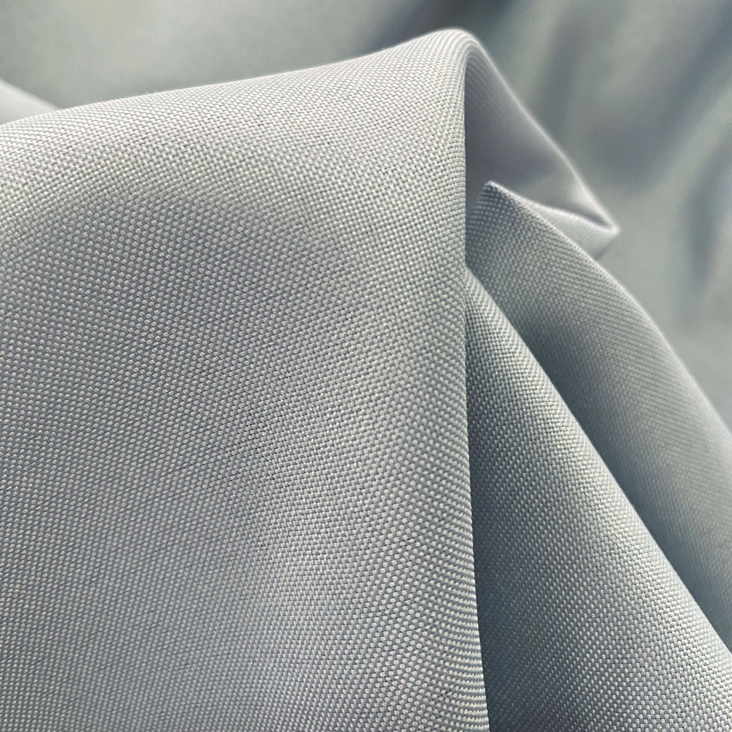 Gładka, matowa tkanina w kolorze szarym. Jest lekka, półprześwitująca, idealna na zasłonki dekoracyjne.