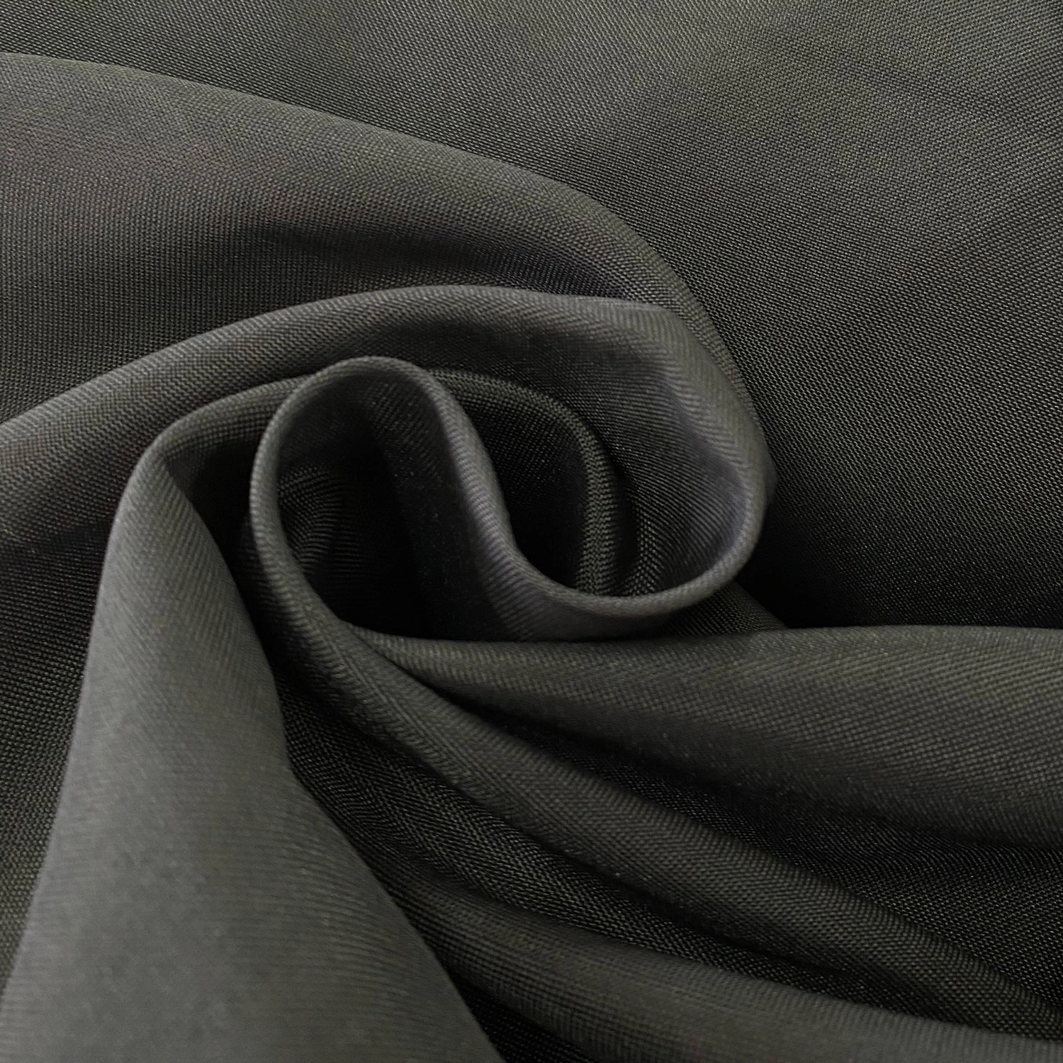 Gładka, matowa tkanina w kolorze grafitowym. Jest lekka, półprześwitująca, idealna na zasłonki dekoracyjne.
