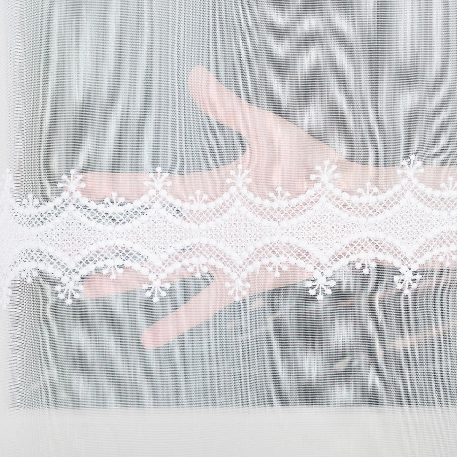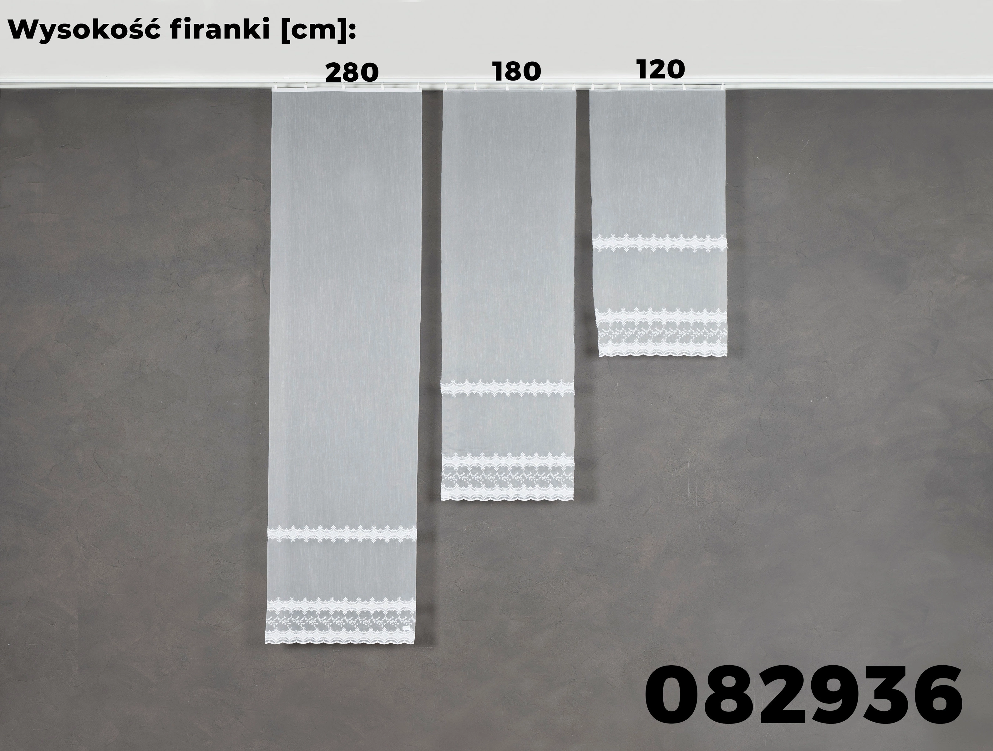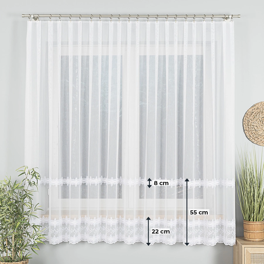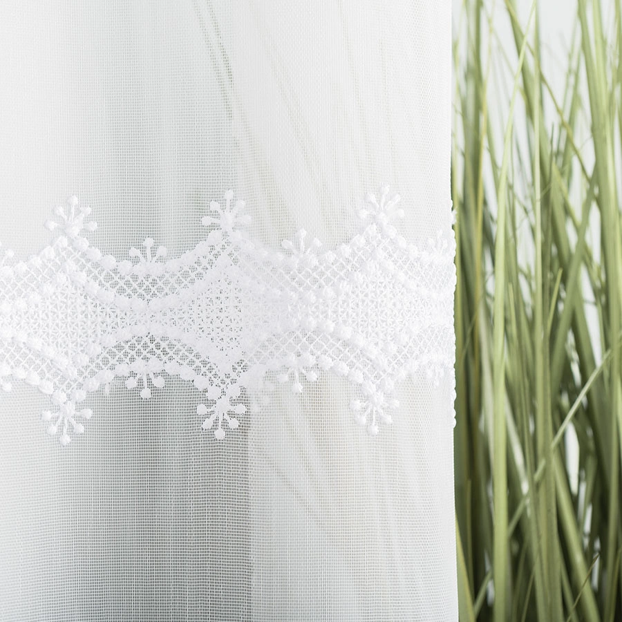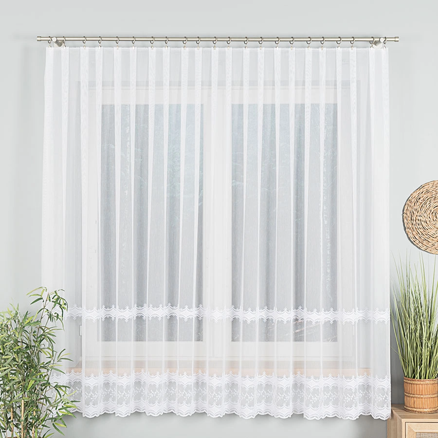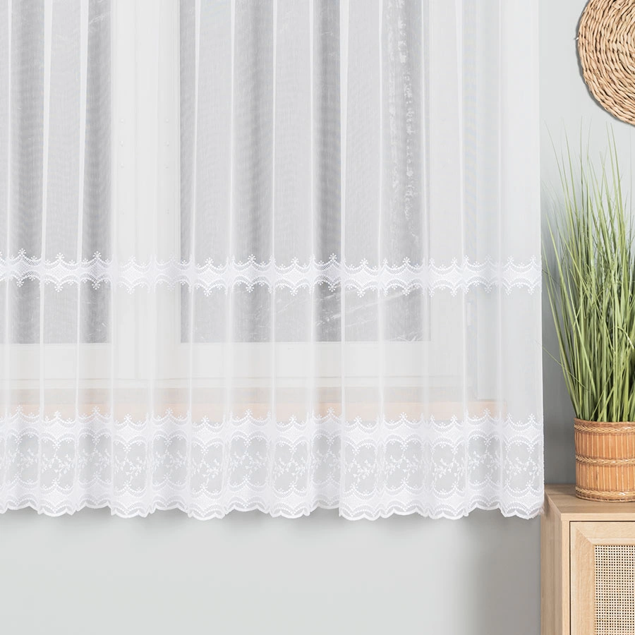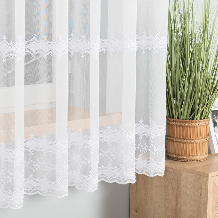 Firanka haftowana na metry 082936. Firankę można zamówić jako sam materiał i samodzielnie udekorować okno lub skorzystać z naszej usługi szycia na wymiar, dostosowując ją idealnie do swojego okna.