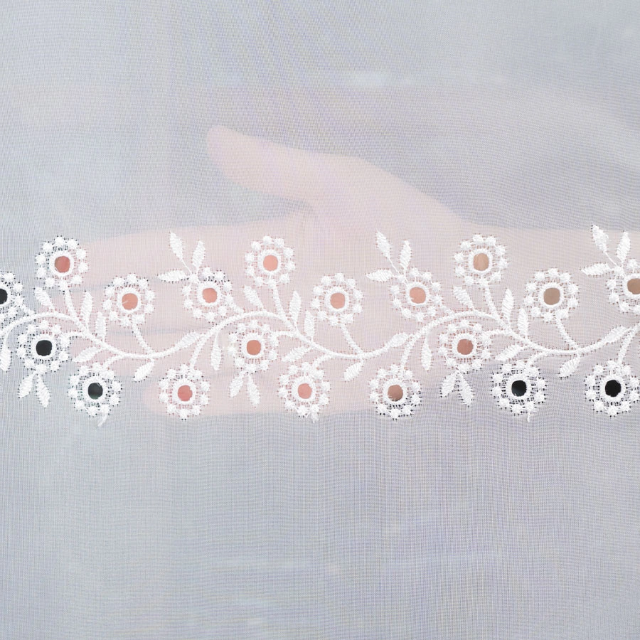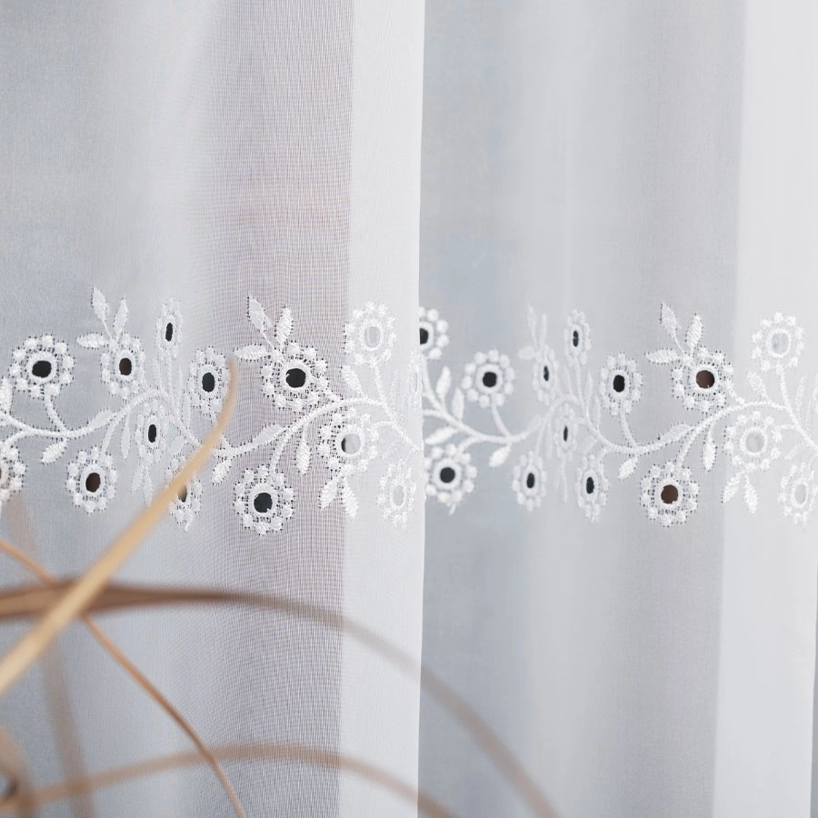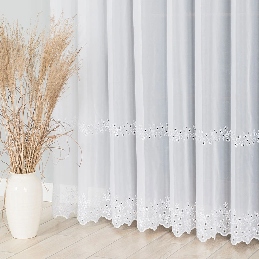 Firanka haftowana na metry 112746. Firankę można zamówić jako sam materiał i samodzielnie udekorować okno lub skorzystać z naszej usługi szycia na wymiar, dostosowując ją idealnie do swojego okna.