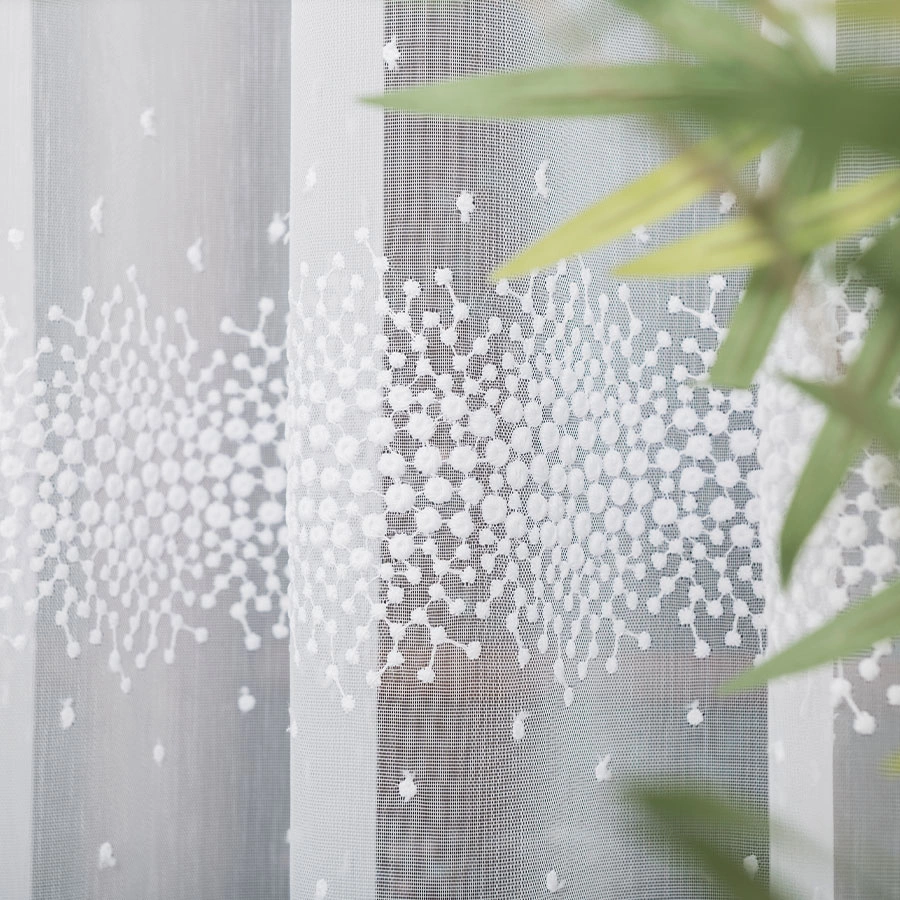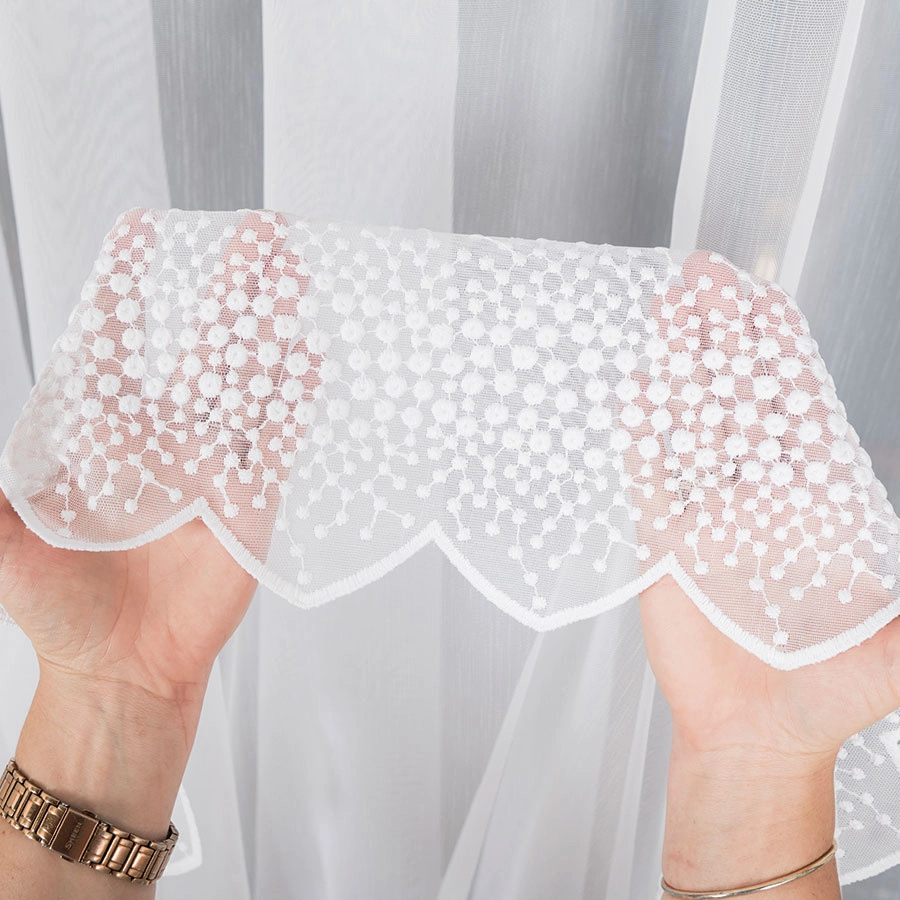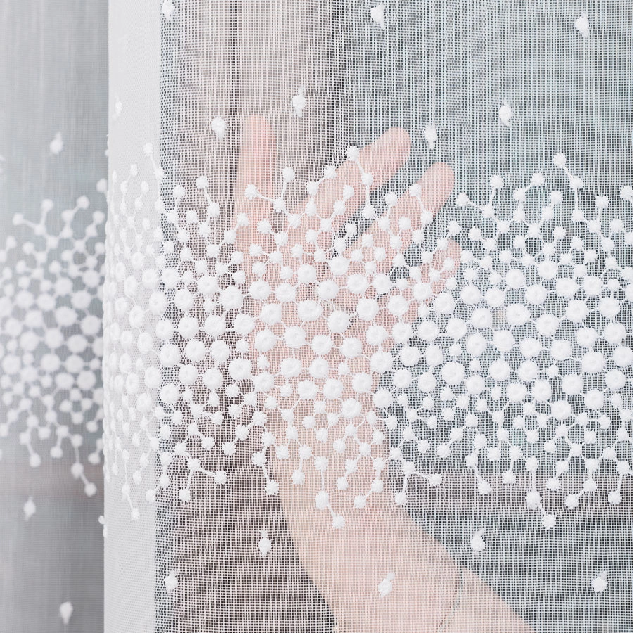 Firanka haftowana na metry 112853. Firankę można zamówić jako sam materiał i samodzielnie udekorować okno lub skorzystać z naszej usługi szycia na wymiar, dostosowując ją idealnie do swojego okna.