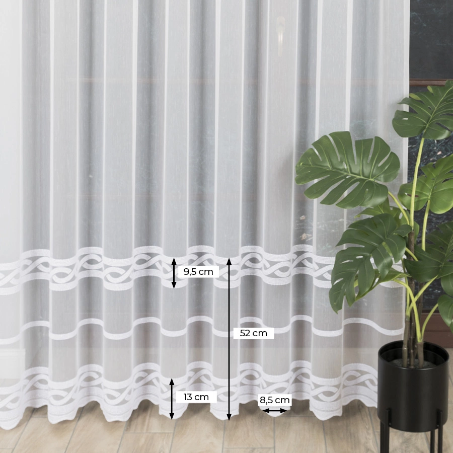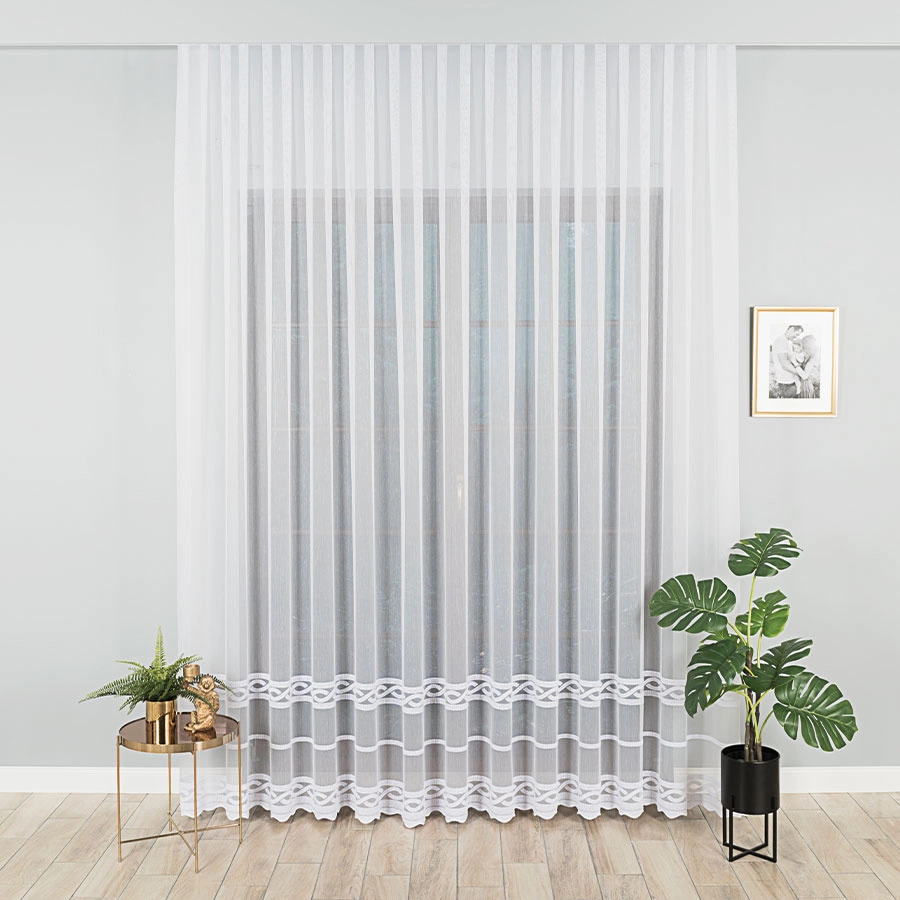 Firanka haftowana na metry 123750. Firankę można zamówić jako sam materiał i samodzielnie udekorować okno lub skorzystać z naszej usługi szycia na wymiar, dostosowując ją idealnie do swojego okna.