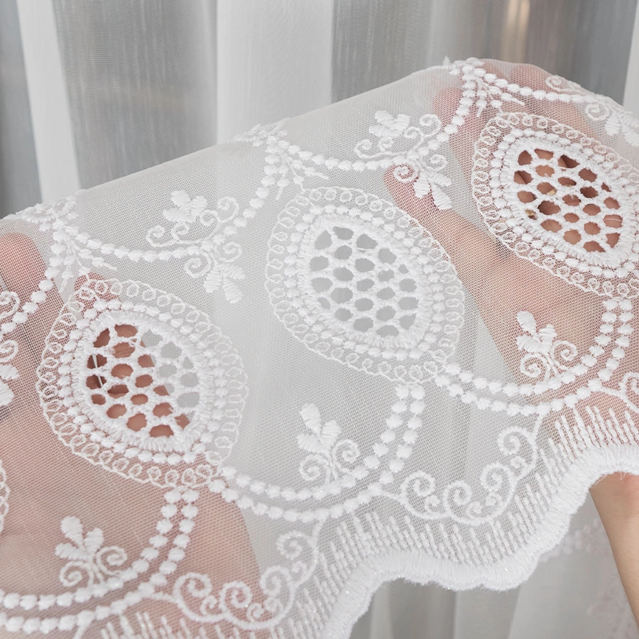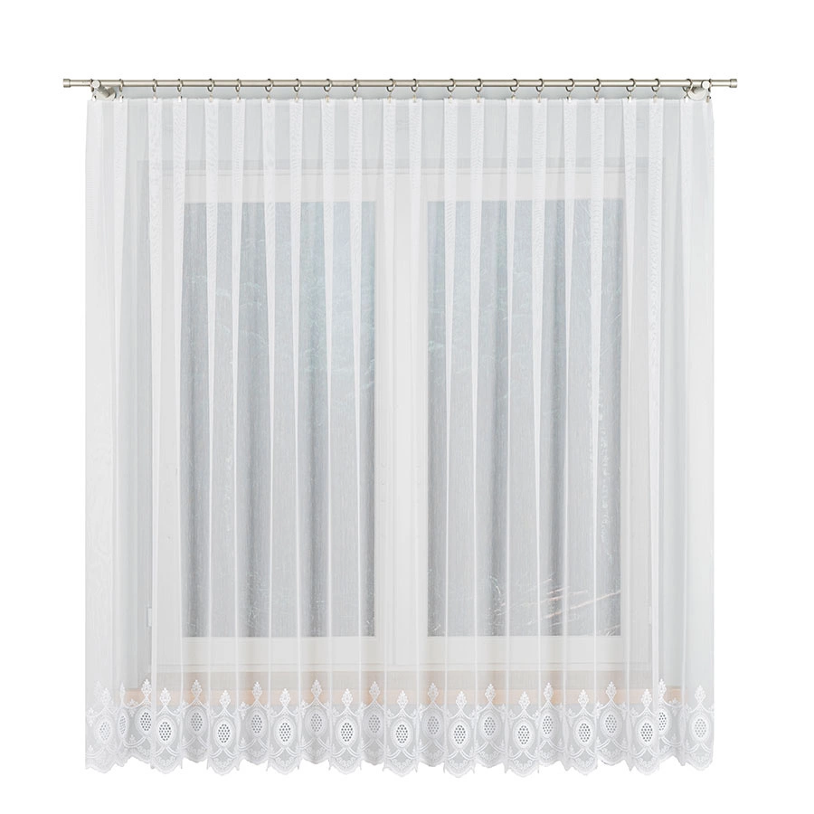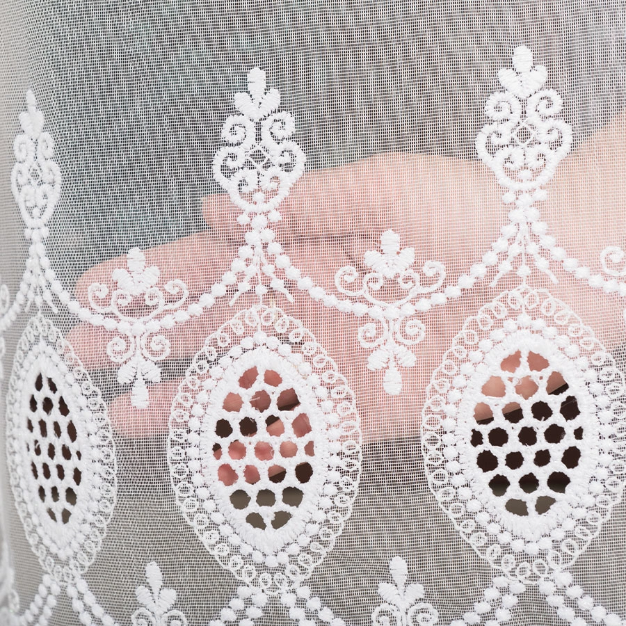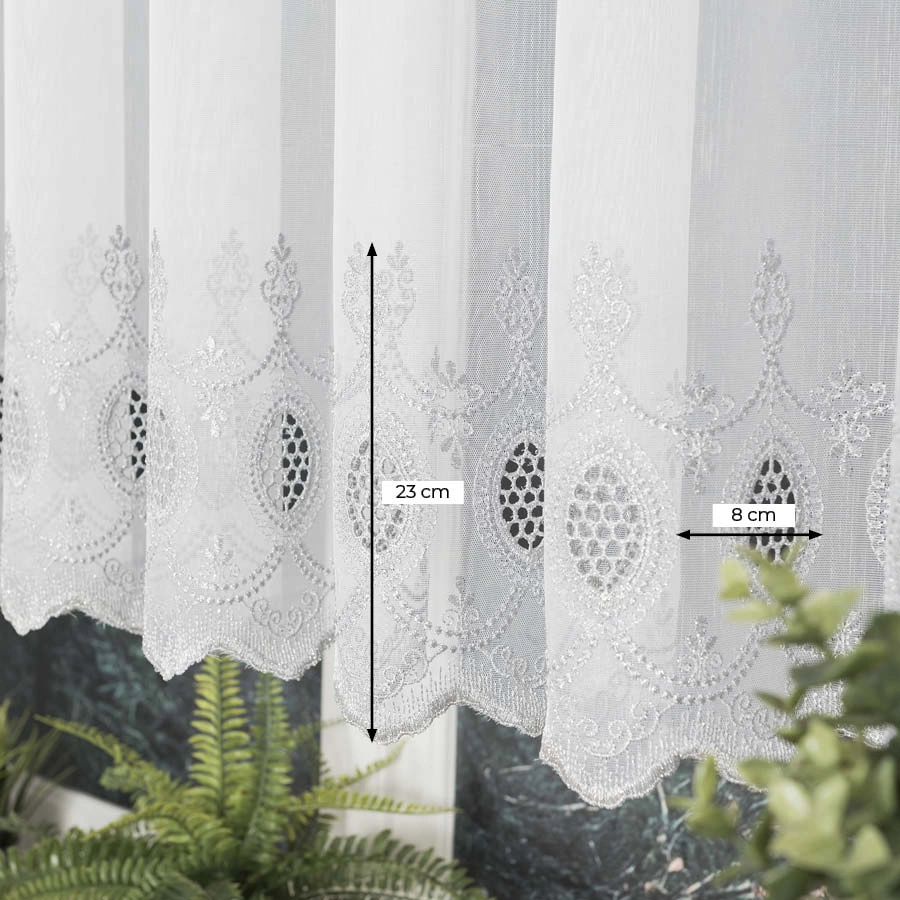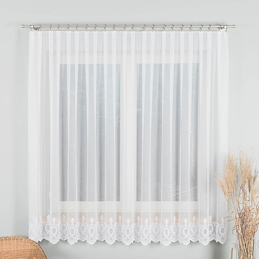 Firanka haftowana na metry 123946. Firankę można zamówić jako sam materiał i samodzielnie udekorować okno lub skorzystać z naszej usługi szycia na wymiar, dostosowując ją idealnie do swojego okna.