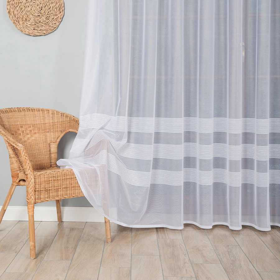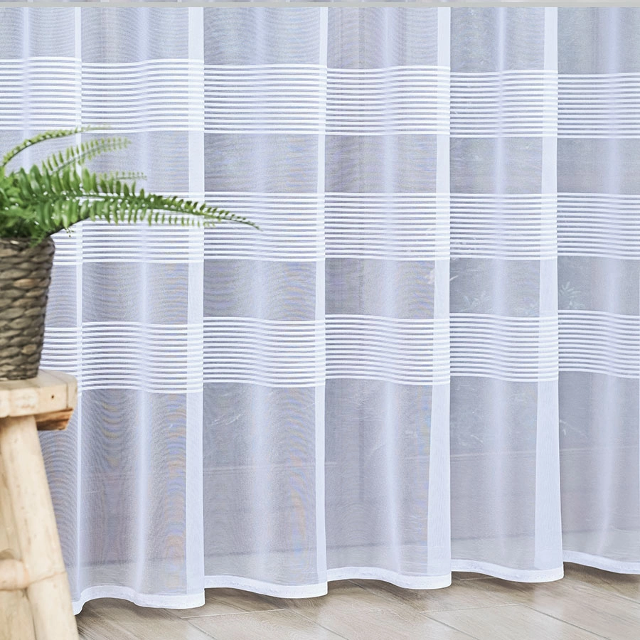 Firanka żakardowa na metry 000282 wykonana z wysokiej jakości przędzy, wyróżnia się trwałością i łatwością w utrzymaniu. Idealnie komponuje się z każdym wnętrzem. Oferujemy również usługę uszycia na wymiar, zapewniając idealne dopasowanie do Twoich okien.
