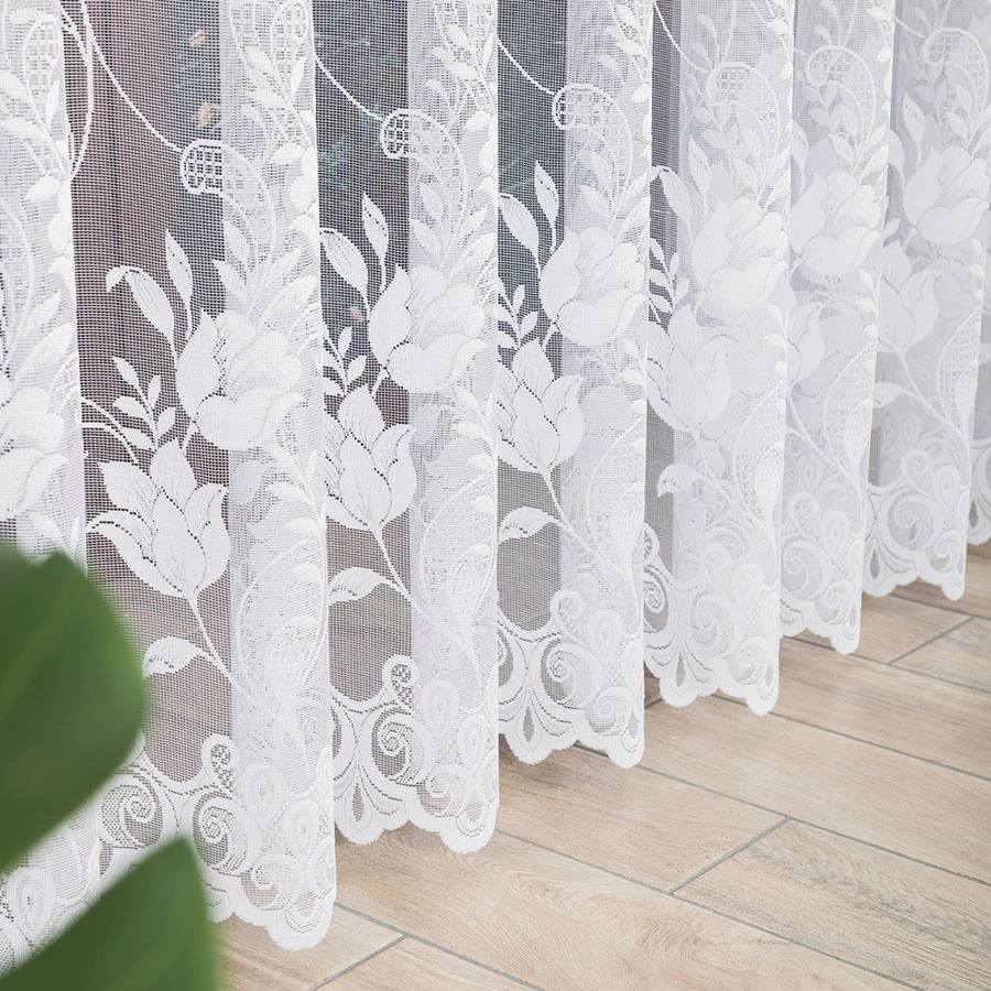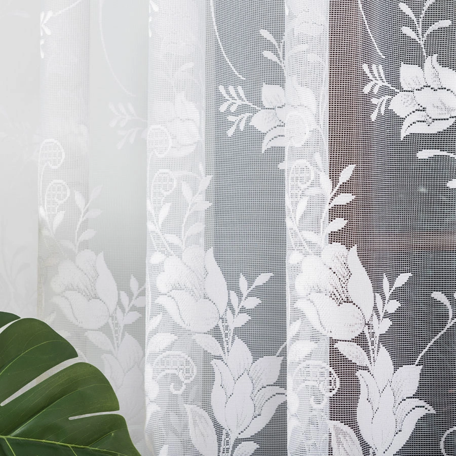 Firanka żakardowa na metry 005189 wykonana z wysokiej jakości przędzy, wyróżnia się trwałością i łatwością w utrzymaniu. Idealnie komponuje się z każdym wnętrzem. Oferujemy również usługę uszycia na wymiar, zapewniając idealne dopasowanie do Twoich okien.