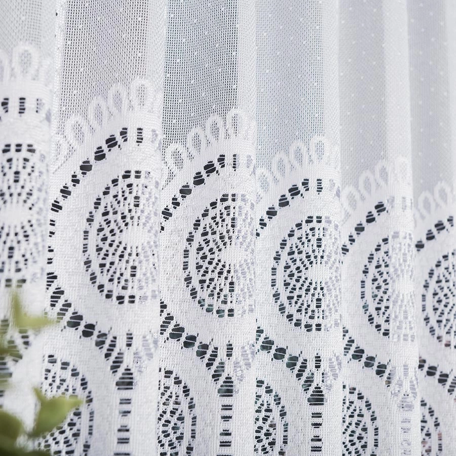 Firanka żakardowa na metry 018535 wykonana z wysokiej jakości przędzy, wyróżnia się trwałością i łatwością w utrzymaniu. Idealnie komponuje się z każdym wnętrzem. Oferujemy również usługę uszycia na wymiar, zapewniając idealne dopasowanie do Twoich okien.