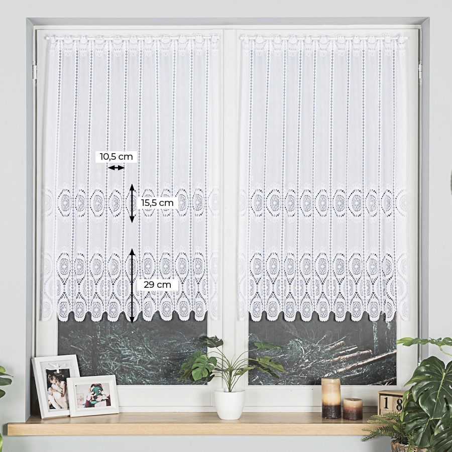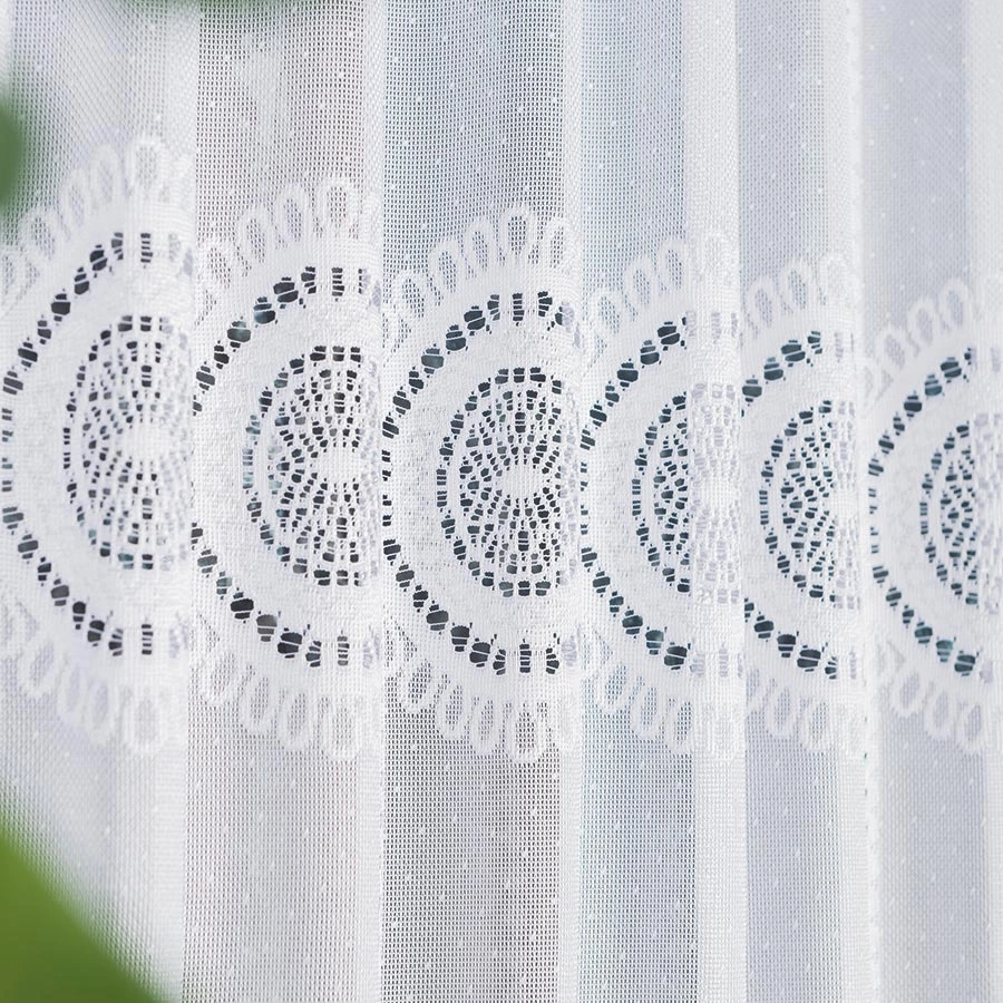 Firanka żakardowa na metry 018535 wykonana z wysokiej jakości przędzy, wyróżnia się trwałością i łatwością w utrzymaniu. Idealnie komponuje się z każdym wnętrzem. Oferujemy również usługę uszycia na wymiar, zapewniając idealne dopasowanie do Twoich okien.