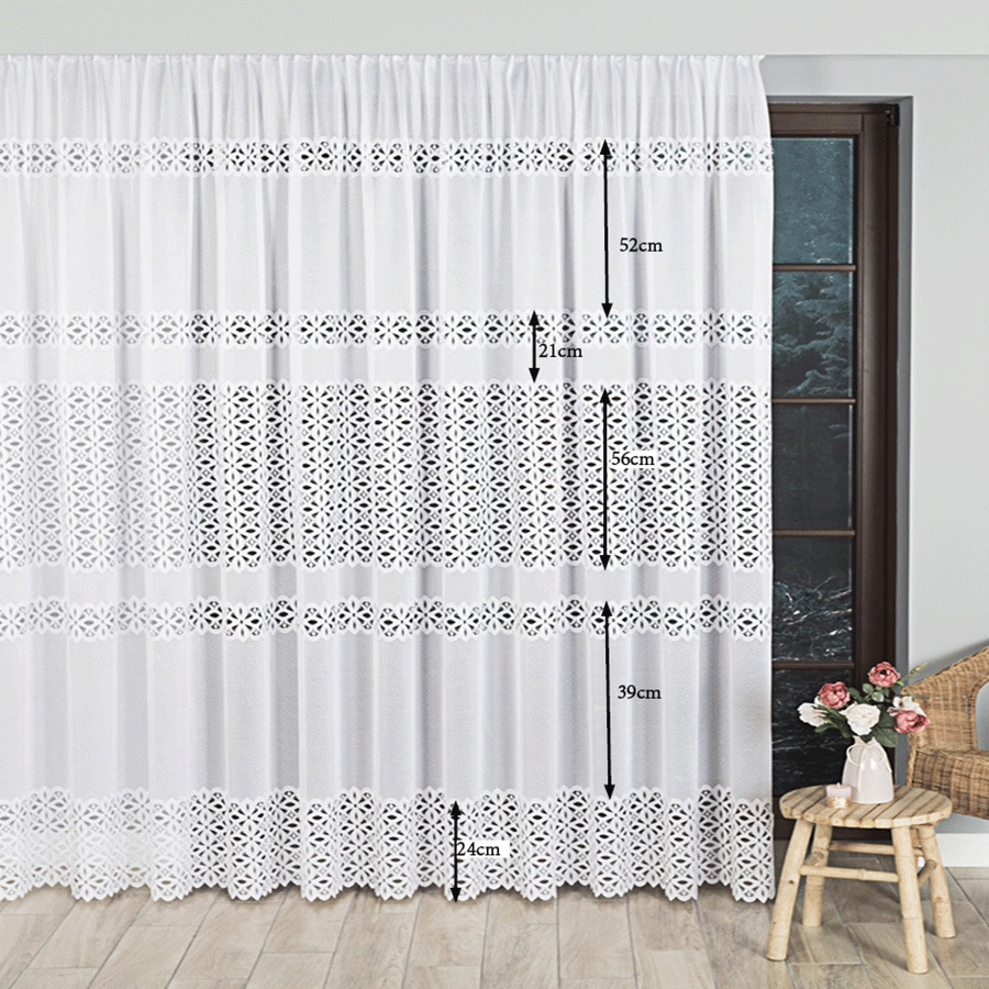 Firanka żakardowa na metry 018869 wykonana z wysokiej jakości przędzy, wyróżnia się trwałością i łatwością w utrzymaniu. Idealnie komponuje się z każdym wnętrzem. Oferujemy również usługę uszycia na wymiar, zapewniając idealne dopasowanie do Twoich okien.