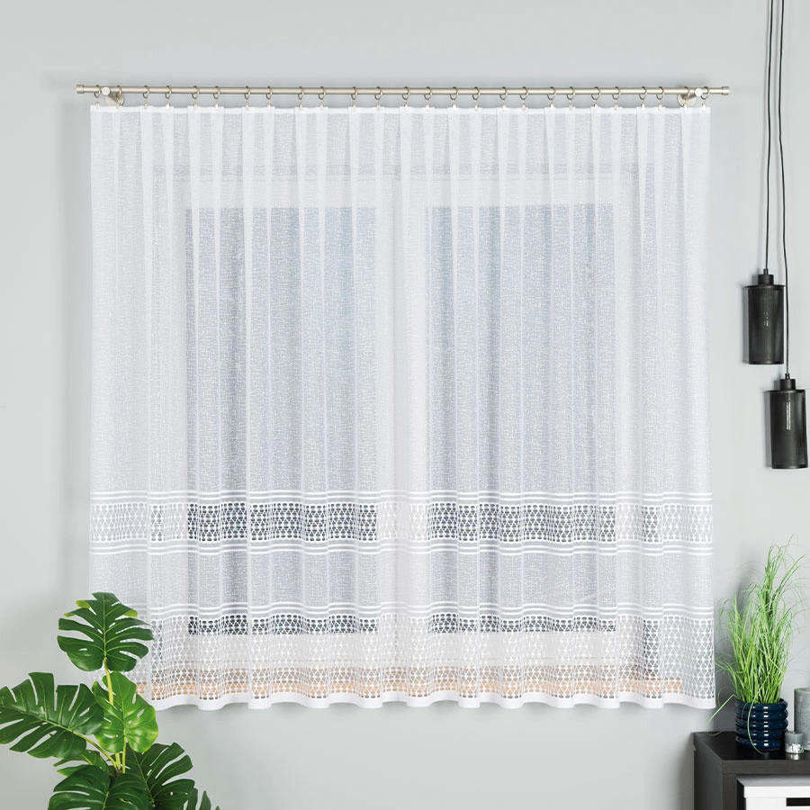 Firanka żakardowa na metry 115024 wykonana z wysokiej jakości przędzy, wyróżnia się trwałością i łatwością w utrzymaniu. Idealnie komponuje się z każdym wnętrzem. Oferujemy również usługę uszycia na wymiar, zapewniając idealne dopasowanie do Twoich okien.