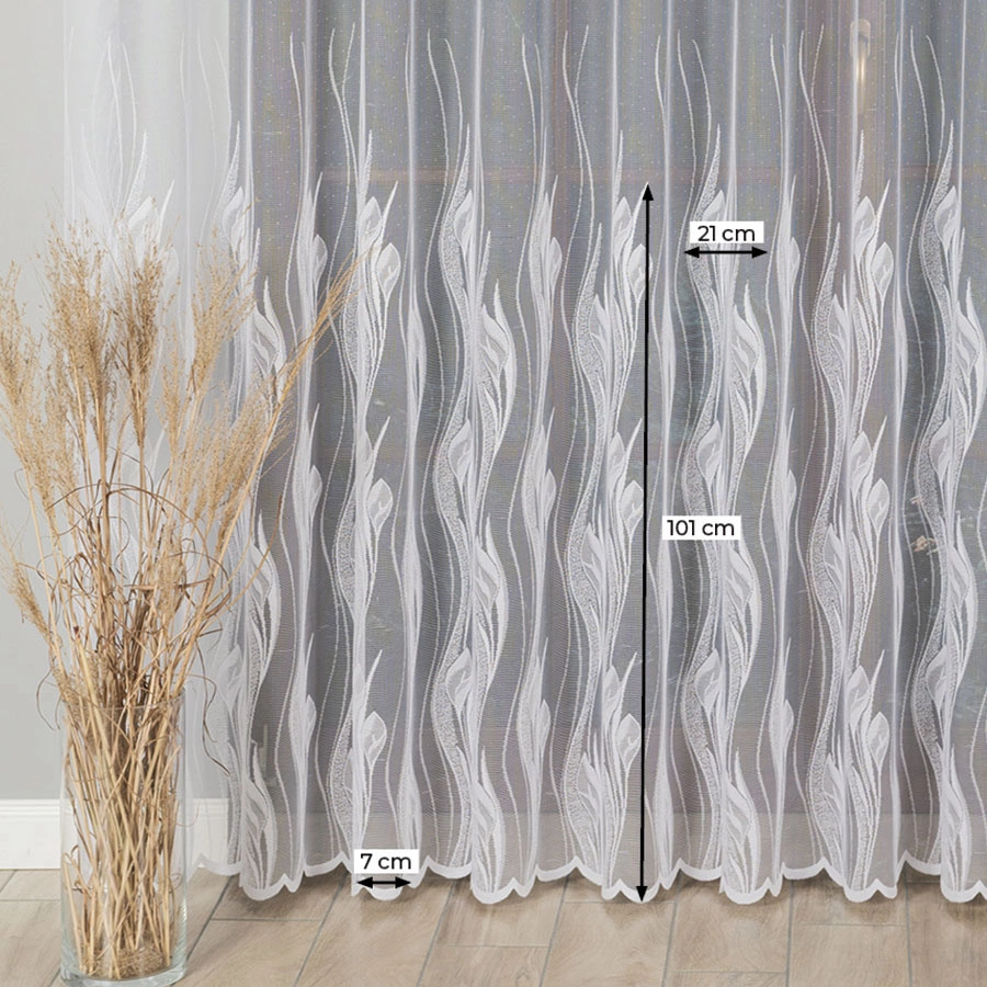 Firanka żakardowa na metry 002599 wykonana z wysokiej jakości przędzy, wyróżnia się trwałością i łatwością w utrzymaniu. Idealnie komponuje się z każdym wnętrzem. Oferujemy również usługę uszycia na wymiar, zapewniając idealne dopasowanie do Twoich okien.