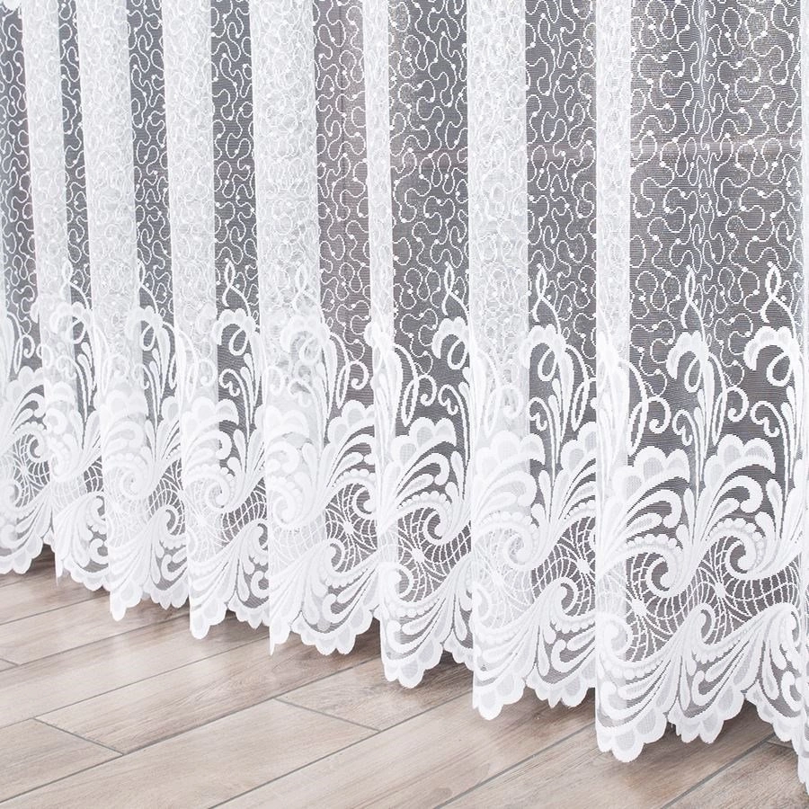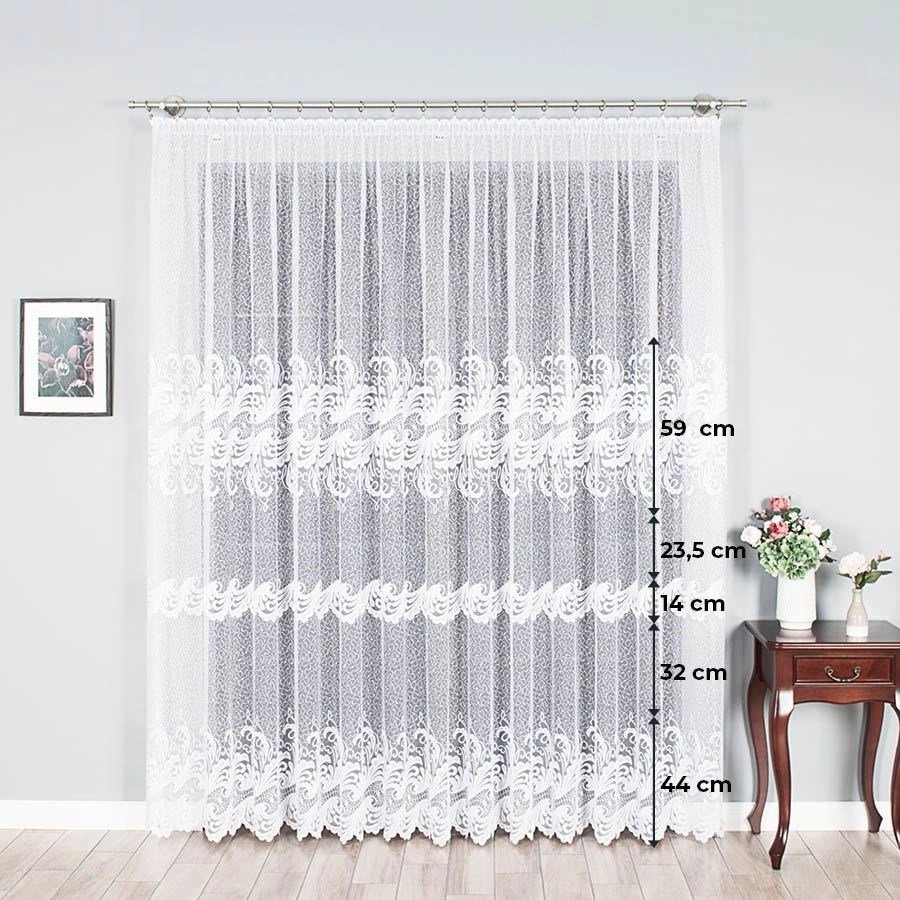 Firanka żakardowa w metrażu z efektowym poprzecznym wzorem. Wykonana z przędzy najwyższej jakości, jest lekka, zwiewna, bardzo dobrze się układa.