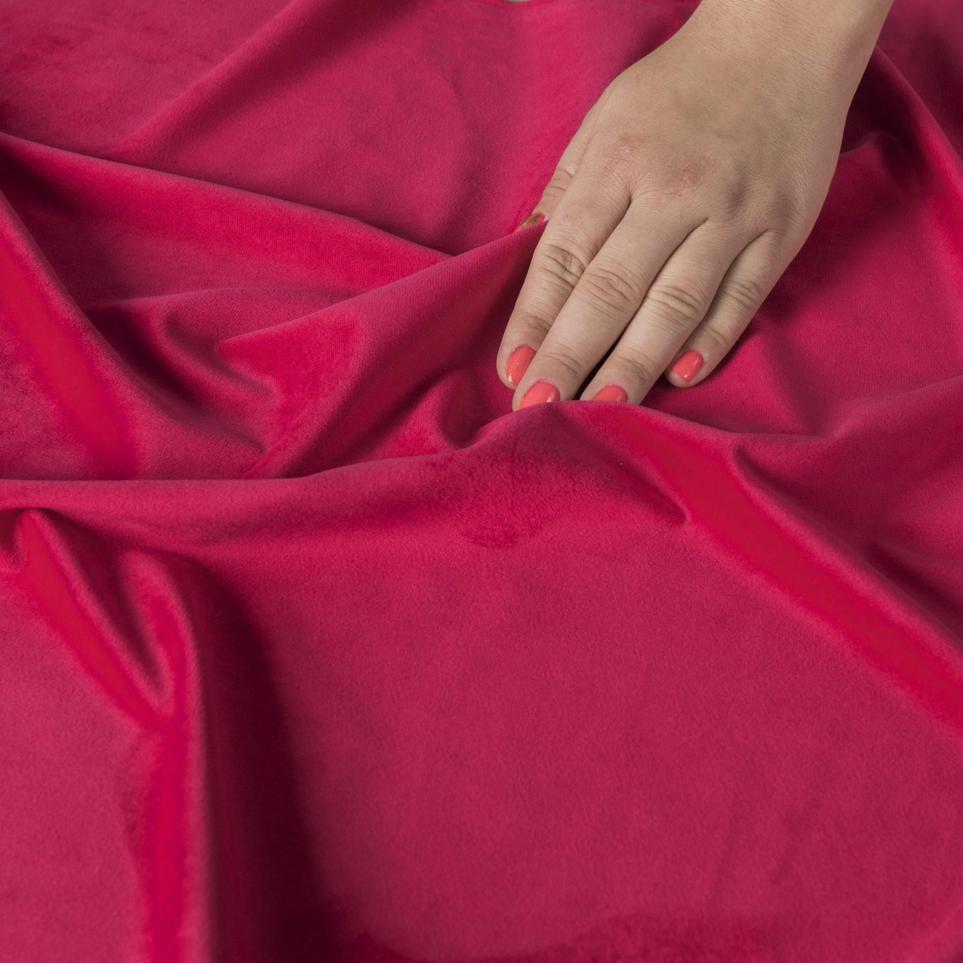 - Velvetowa tkanina zasłonowa, aksamitna i miękka w dotyku.