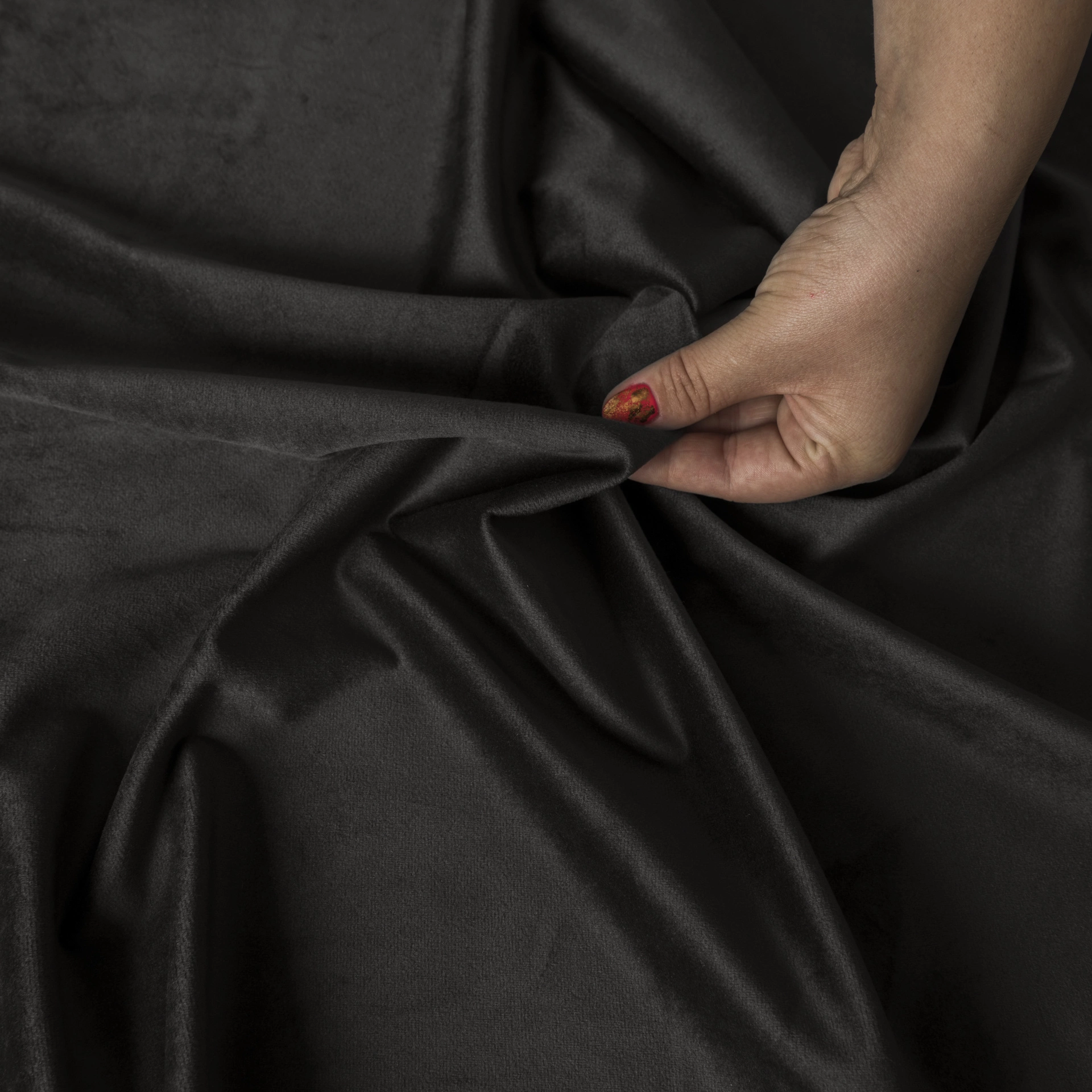 - Velvetowa tkanina zasłonowa, aksamitna i miękka w dotyku.