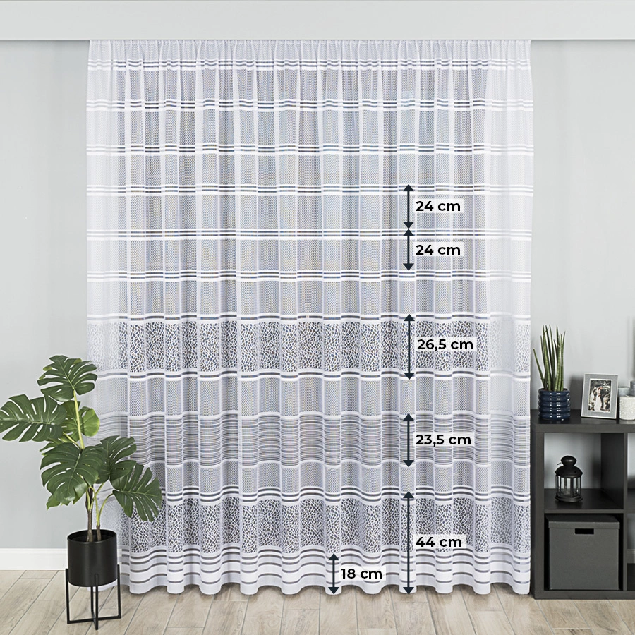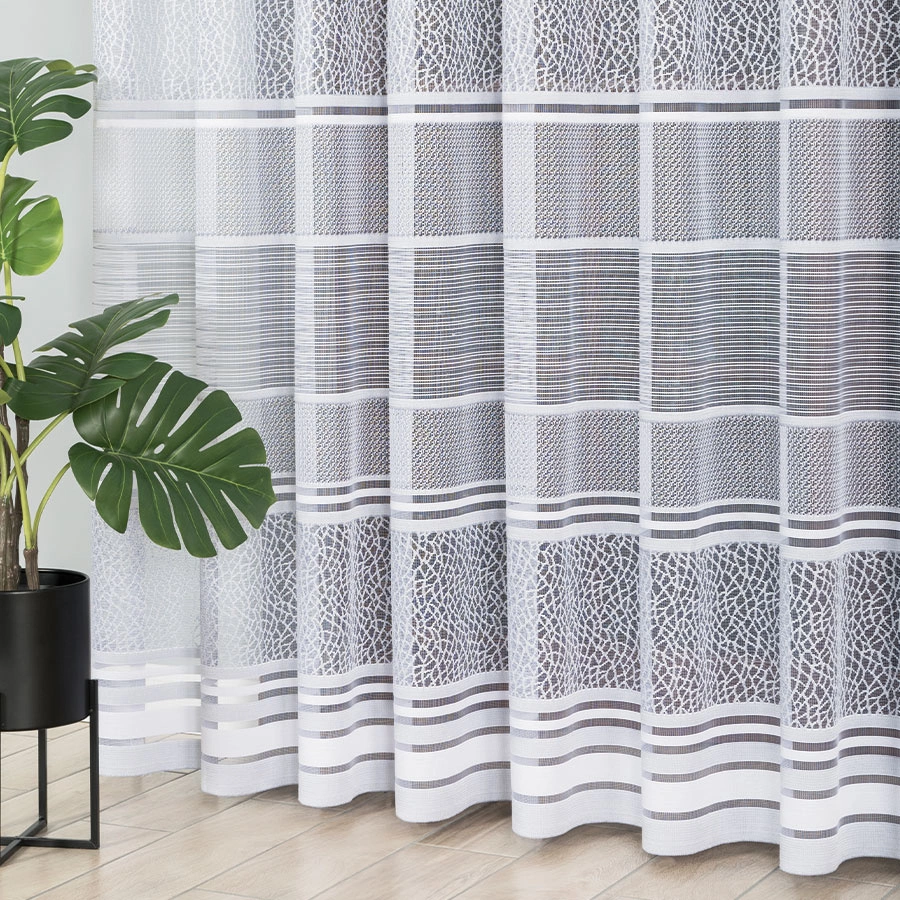 Firanka żakardowa na metry 017834 / kolor biały + szary / kupon 245x250cm
