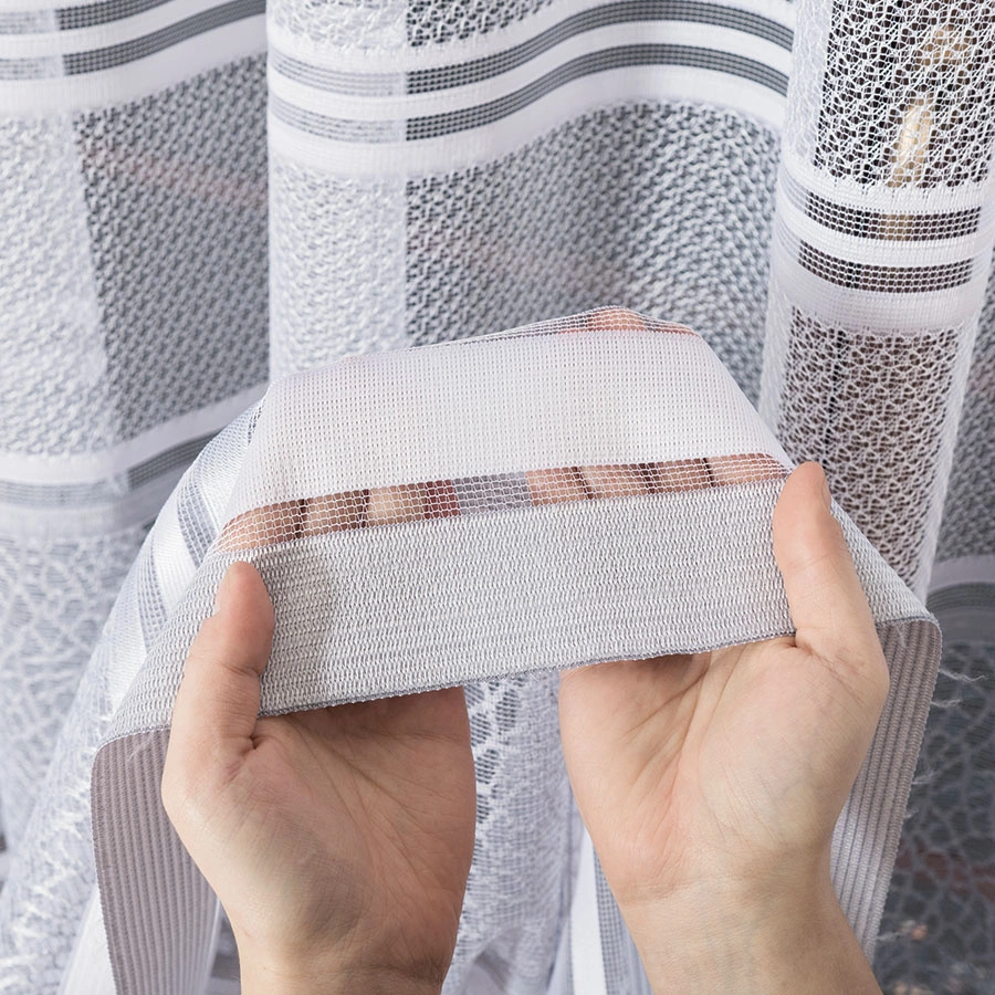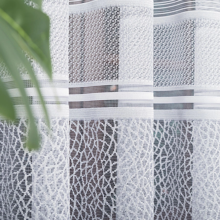 Firanka żakardowa na metry 017834 wykonana z wysokiej jakości przędzy, wyróżnia się trwałością i łatwością w utrzymaniu. Idealnie komponuje się z każdym wnętrzem. Oferujemy również usługę uszycia na wymiar, zapewniając idealne dopasowanie do Twoich okien.