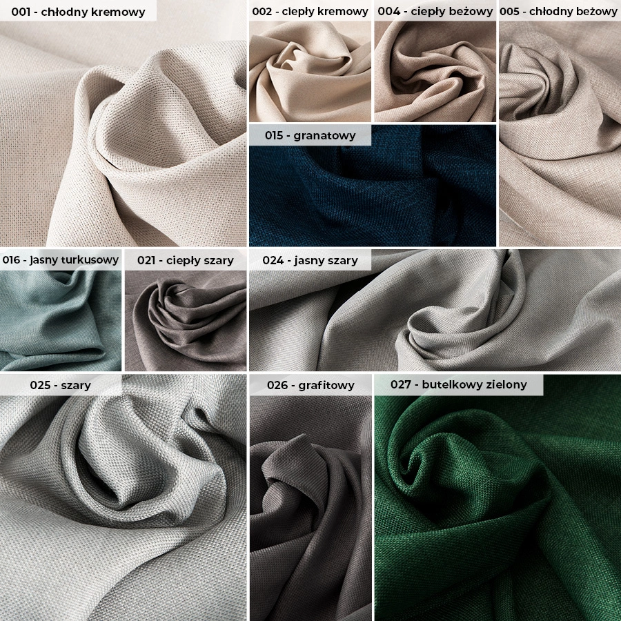 • Tkanina zasłonowa o strzuktorze lnianopodobnej, zaciemniająca na poziomie 70-80%.
