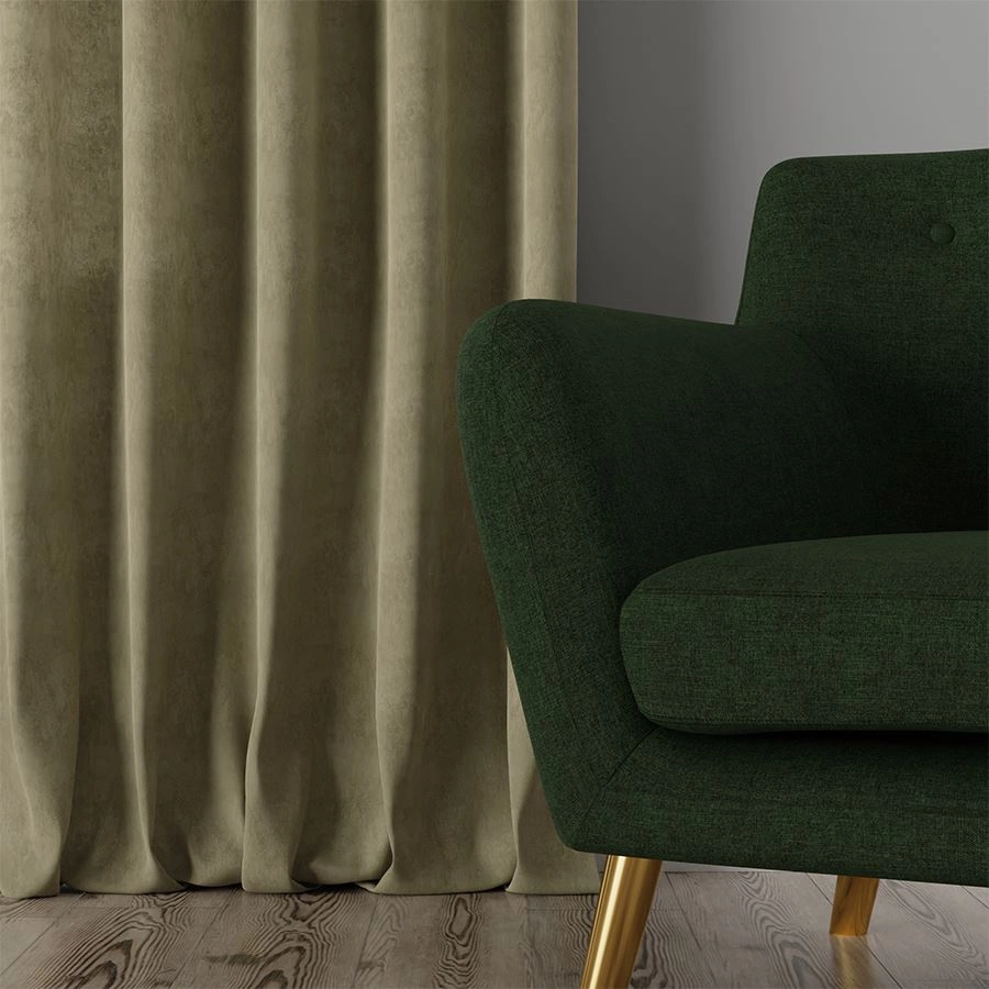 Jednokolorowa tkanina typu "welur", niezwykle miła i przyjemna w dotyku. Jest miękka i lejąca, bardzo dobrze się układa, idealna na zasłony, obicia, poszewki itp.
