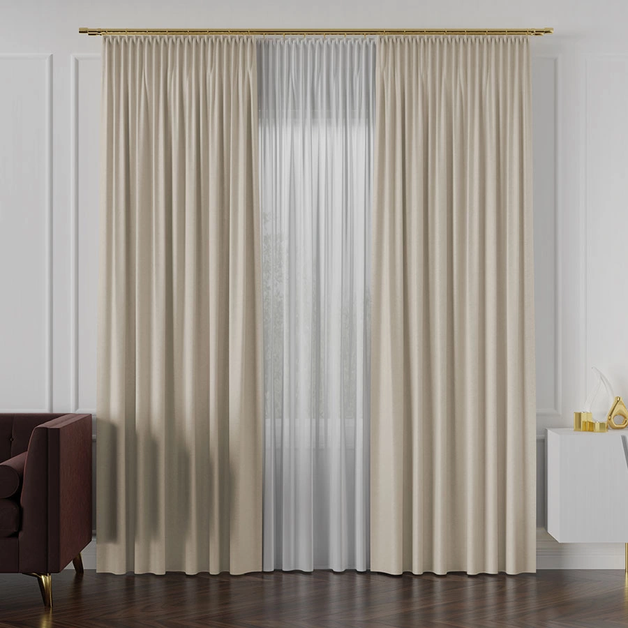 - Tkanina zasłonowa o naturalnym wyglądzie, zapewniająca półzaciemnienie.