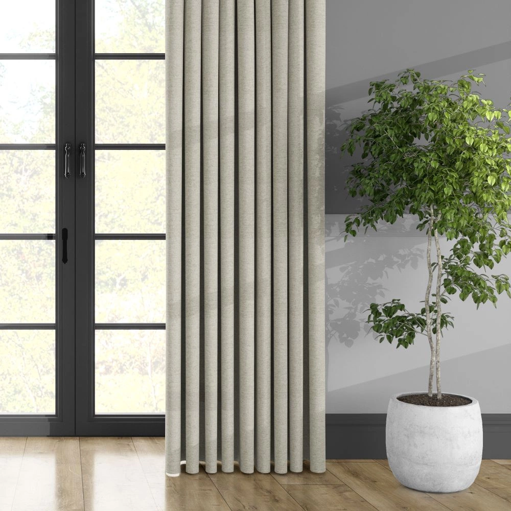 Tkanina ta wyróżnia się wyjątkową melanżowatą strukturą, która dodaje jej unikalnego charakteru. Jej matowa powierzchnia oraz odpowiednio gruba faktura nadają wnętrzu elegancki wygląd i tworzą przyjemną atmosferę. Dodatkowo, w zależności od wybranego koloru, tkanina ta zapewnia skuteczne zaciemnienie na poziomie 60-70%, chroniąc pomieszczenie przed nadmiernym światłem z zewnątrz.