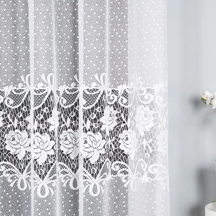 Pasowa firana żakardowa z motywem róży, która delikatnie osłoni twoje wnętrze, nie odbierając promieni słonecznych. Znakomicie się układa, przez co idealnie nadaje się do każdego pomieszczenia.