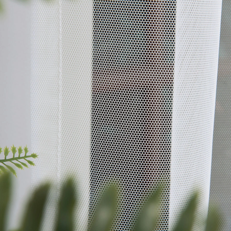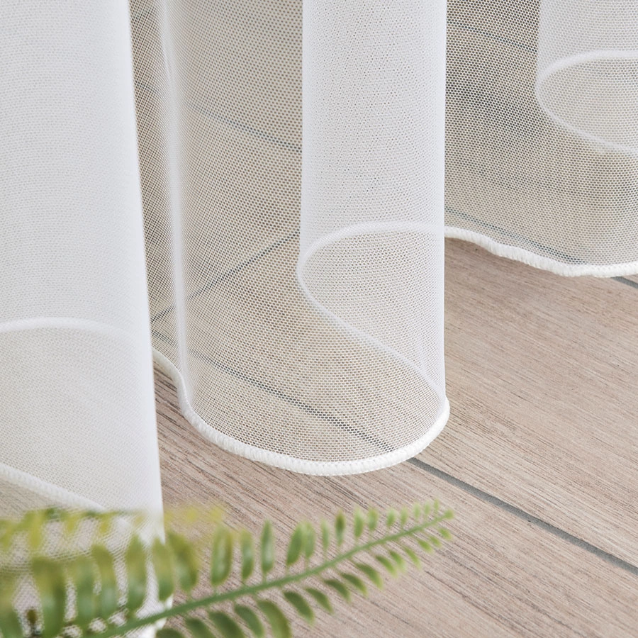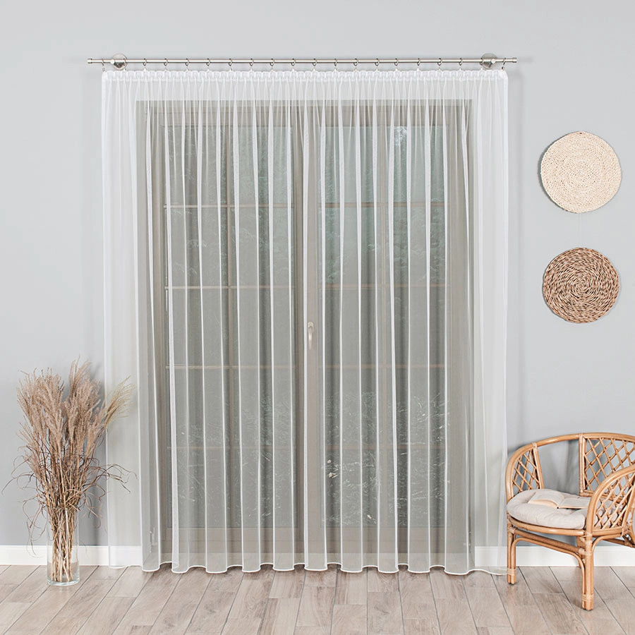 • Gładka firanka o strukturze tiulu greckiego idealnie pasuje do każego wnętrza, przepuszcza dużo światła i pięknie się układa.