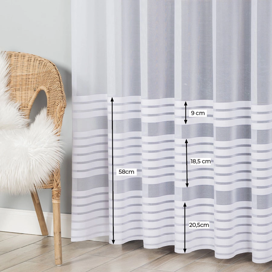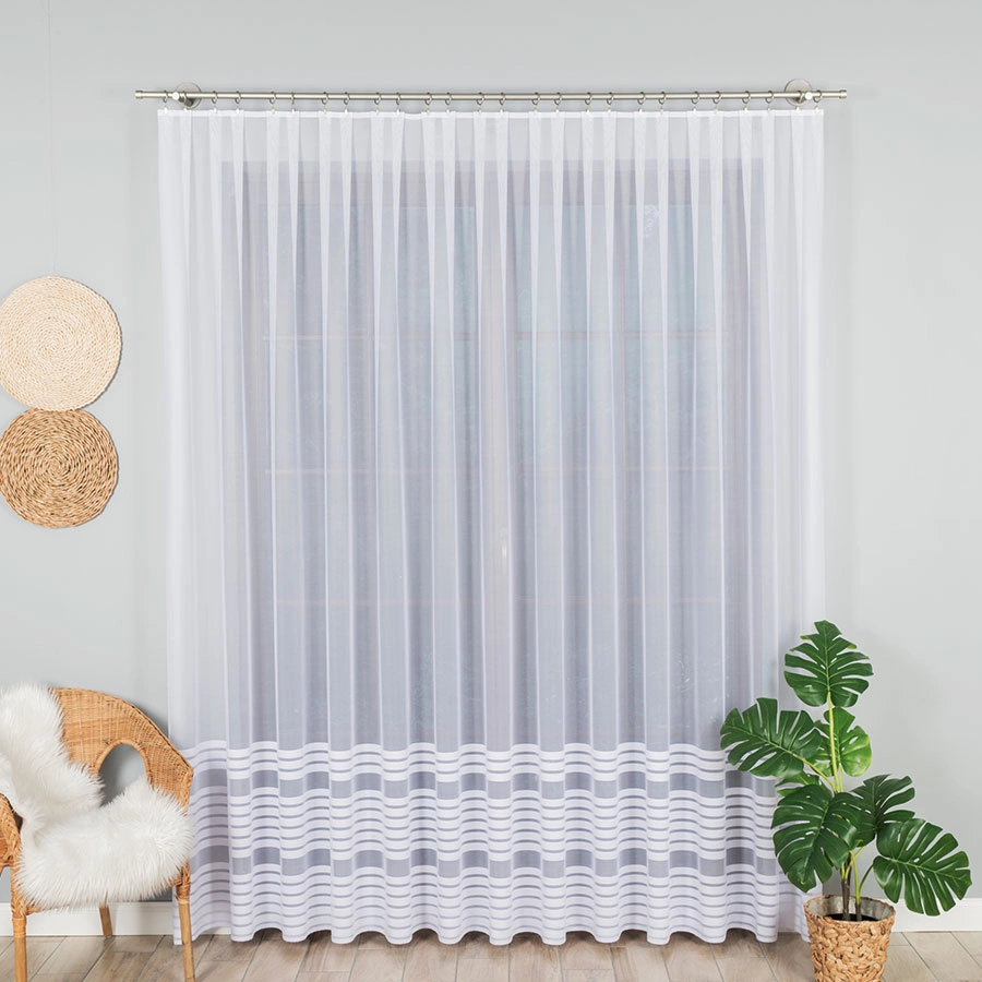 Firanka żakardowa na metry 000281 wykonana z wysokiej jakości przędzy, wyróżnia się trwałością i łatwością w utrzymaniu. Idealnie komponuje się z każdym wnętrzem. Oferujemy również usługę uszycia na wymiar, zapewniając idealne dopasowanie do Twoich okien.