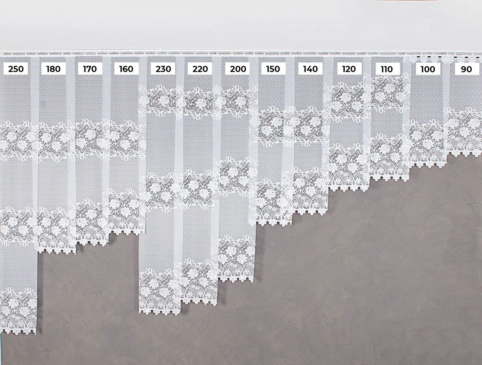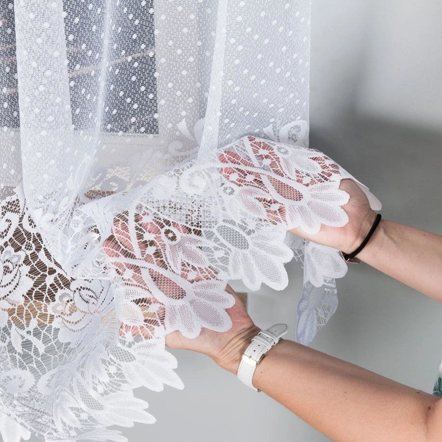 Pasowa firana żakardowa z motywem róży, która delikatnie osłoni twoje wnętrze, nie odbierając promieni słonecznych. Znakomicie się układa, przez co idealnie nadaje się do każdego pomieszczenia.