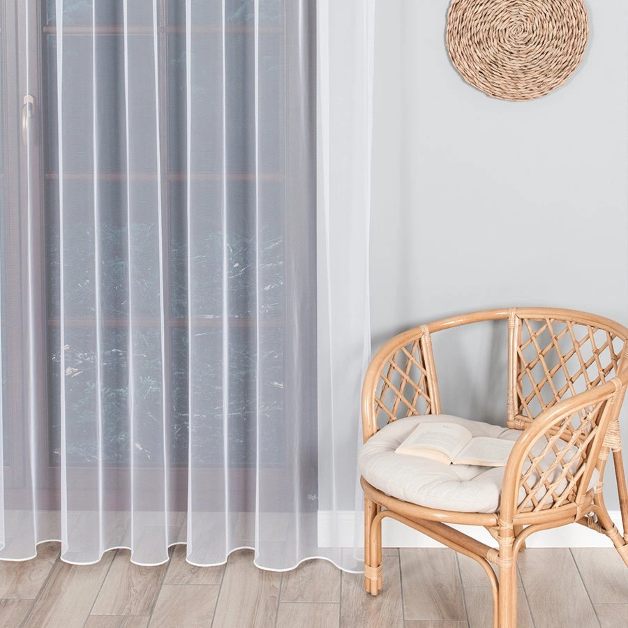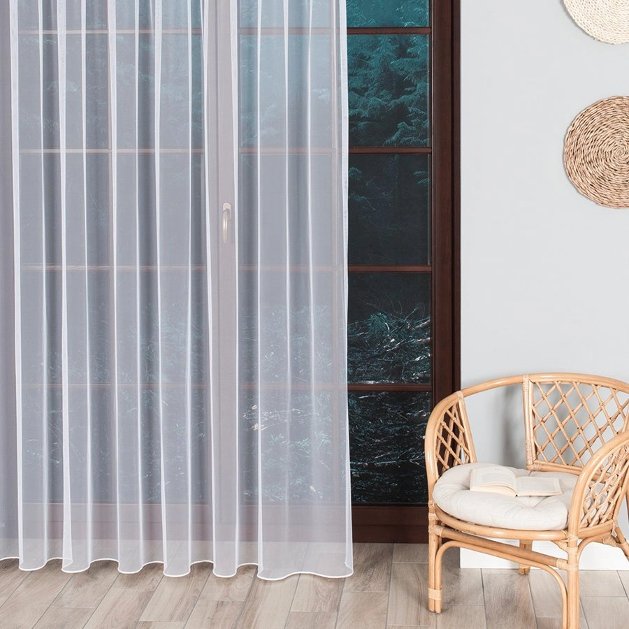 - Gładka firanka o strukturze tiulu greckiego idealnie pasuje do każego wnętrza, przepuszcza dużo światła i pięknie się układa.