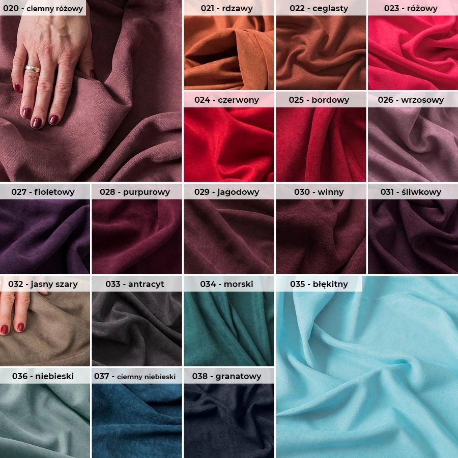 Jednokolorowa tkanina typu "welur", niezwykle miła i przyjemna w dotyku. Jest miękka i lejąca, bardzo dobrze się układa, idealna na zasłony, obicia, poszewki itp.