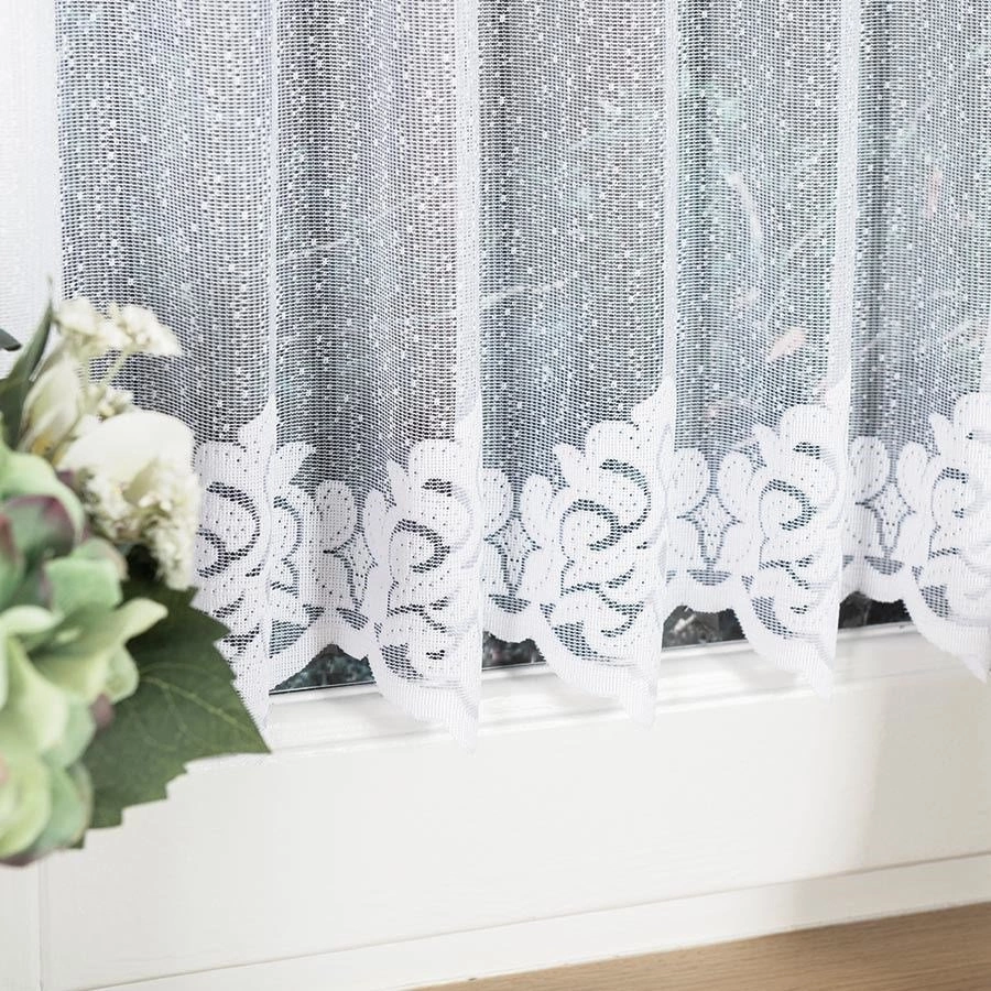 Ta piękna zazdroska żakardowa na metry to idealny wybór do kuchni lub jadalni. Jej prosty, ale elegancki wzór sprawia, że ​​pasuje do różnych aranżacji wnętrz. Firanka jest bardzo łatwa w montażu, dzięki czemu można ją bezpośrednio zawiesić na mini karniszu lub patyczku. Jej wysoka jakość materiału gwarantuje trwałość i estetyczny wygląd przez długi czas.
