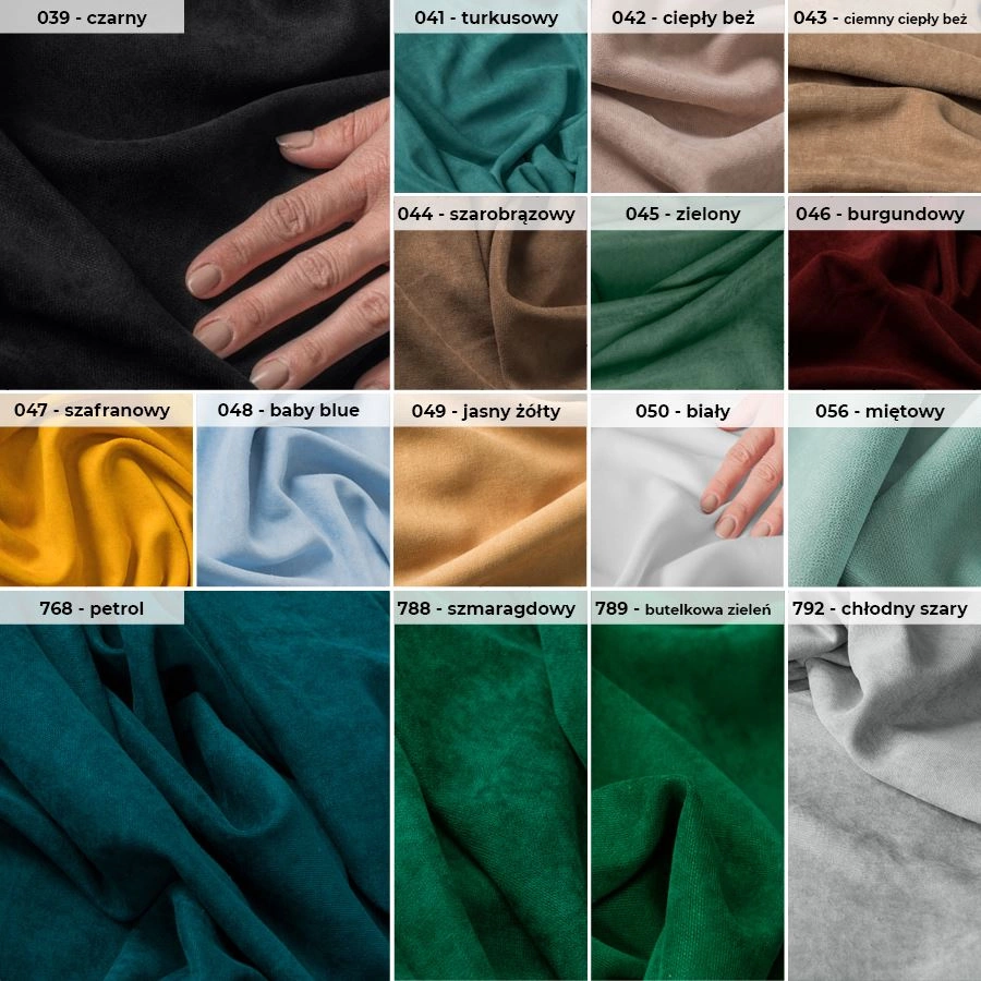 Jednokolorowa tkanina typu "welur", niezwykle miła i przyjemna w dotyku. Jest miękka i lejąca, bardzo dobrze się układa, idealna na zasłony, obicia, poszewki itp.