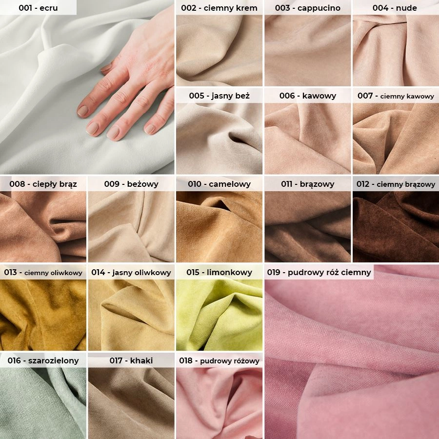 Jednokolorowa tkanina typu "welur", niezwykle miła i przyjemna w dotyku. Jest miękka i lejąca, bardzo dobrze się układa, idealna na zasłony, obicia, poszewki itp.