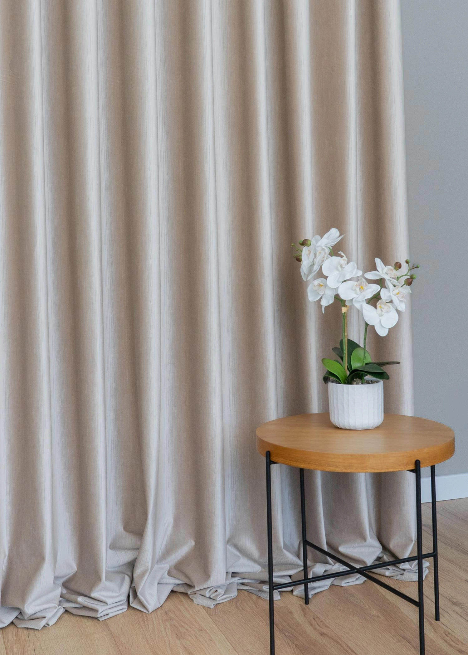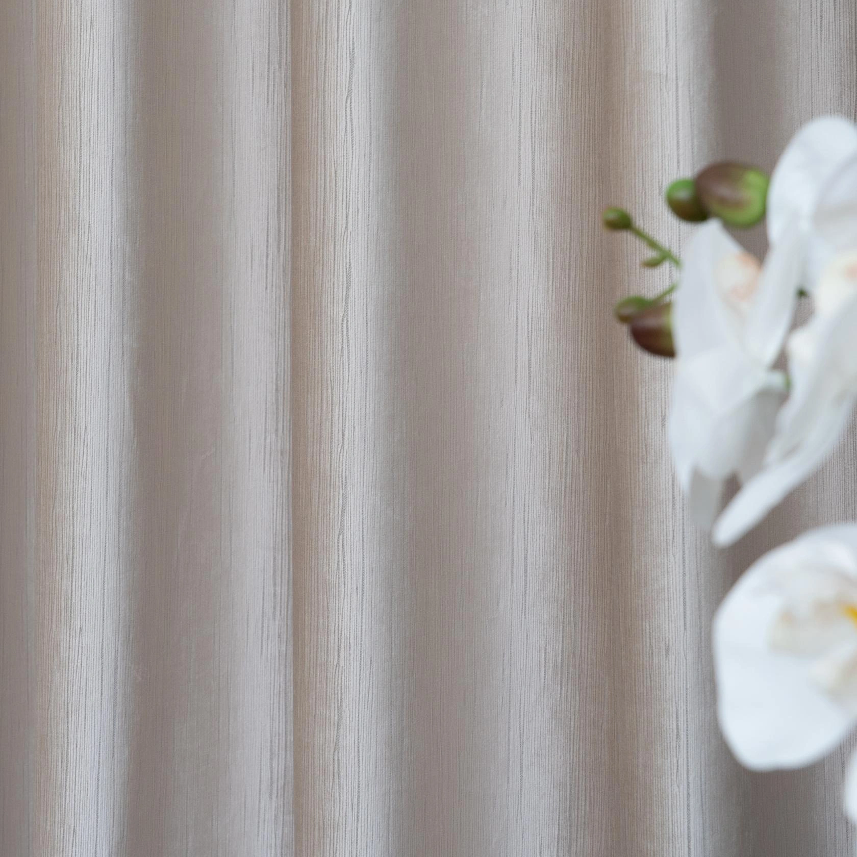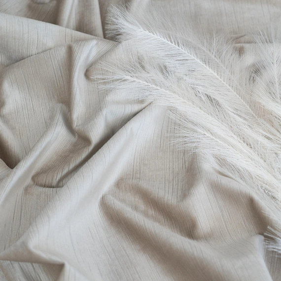 Przedstawiamy wyjątkową tkaninę zasłonową wykonaną z wysokiej jakości welwetu, która zachwyca subtelną, pionową strukturą przypominającą delikatne prążki. Jej powierzchnia pięknie odbija światło, tworząc eleganckie, miękkie załamania i nadając wnętrzu szlachetnego charakteru.