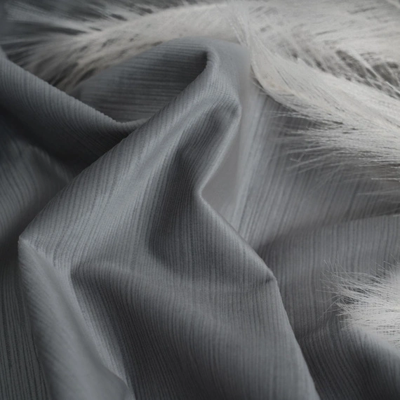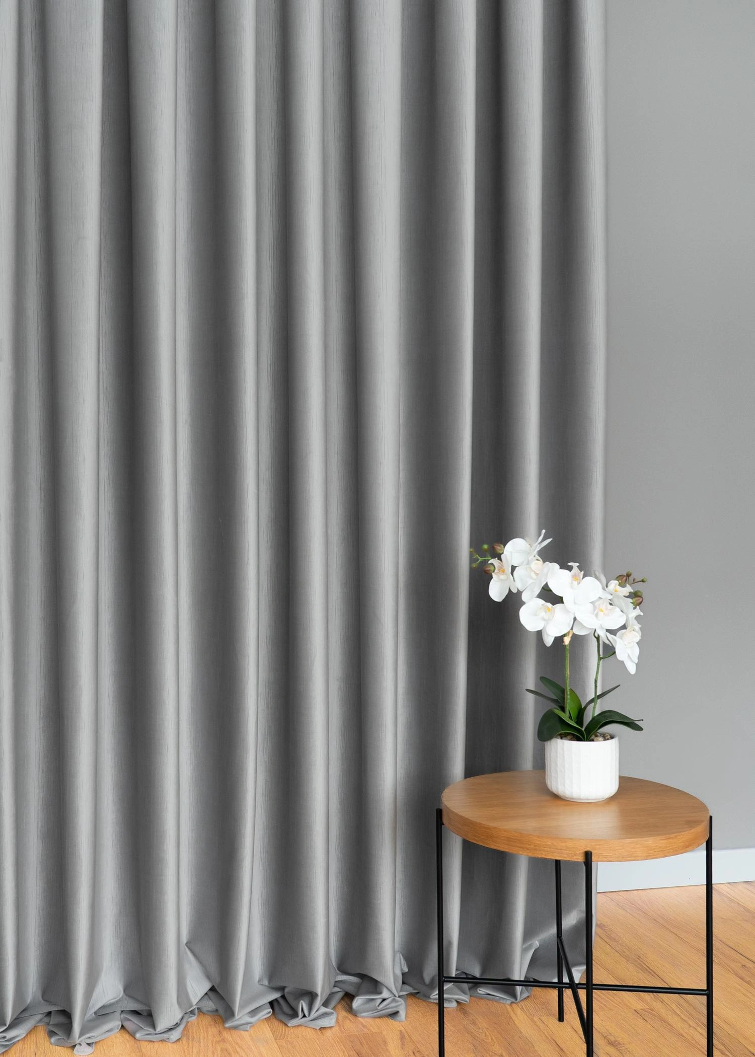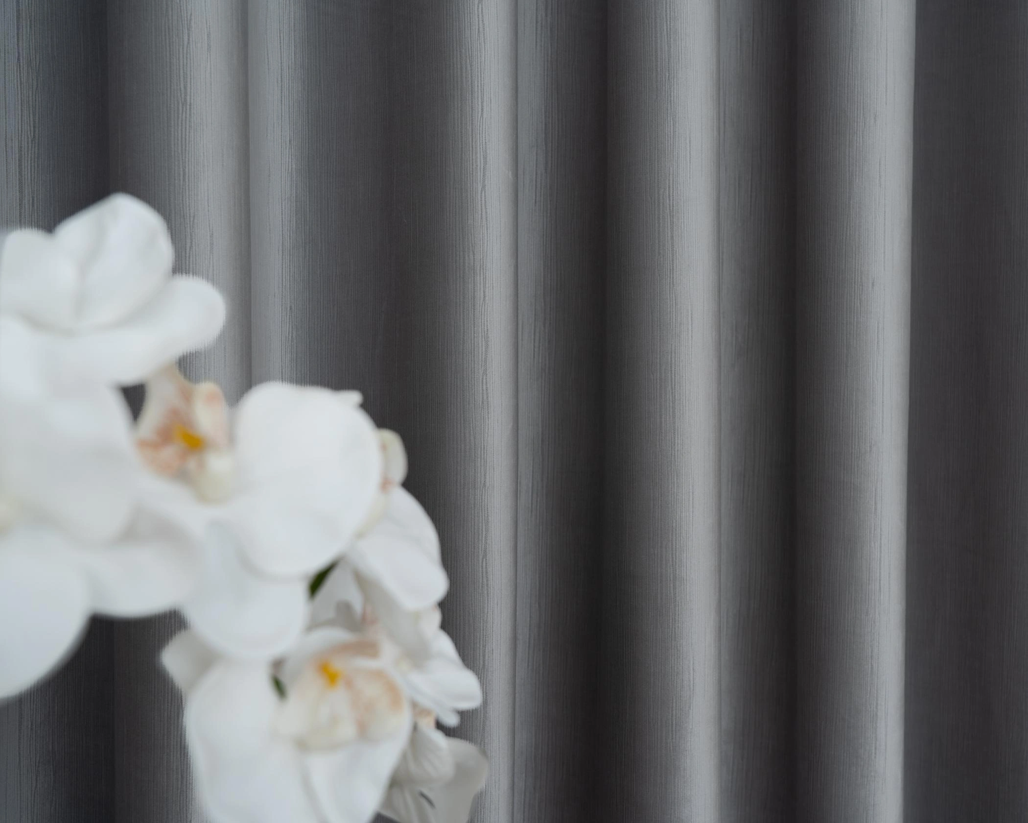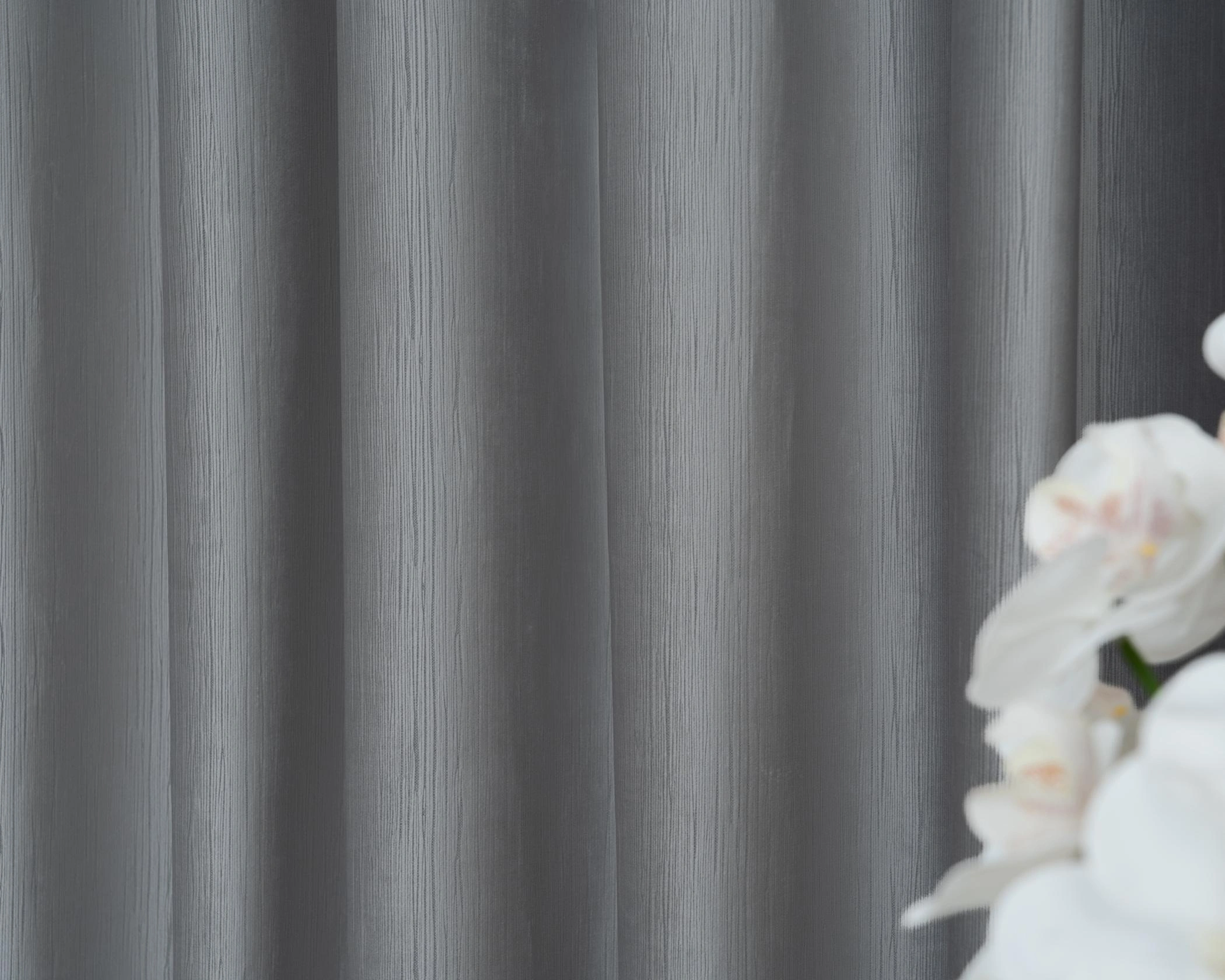 Przedstawiamy wyjątkową tkaninę zasłonową wykonaną z wysokiej jakości welwetu, która zachwyca subtelną, pionową strukturą przypominającą delikatne prążki. Jej powierzchnia pięknie odbija światło, tworząc eleganckie, miękkie załamania i nadając wnętrzu szlachetnego charakteru.