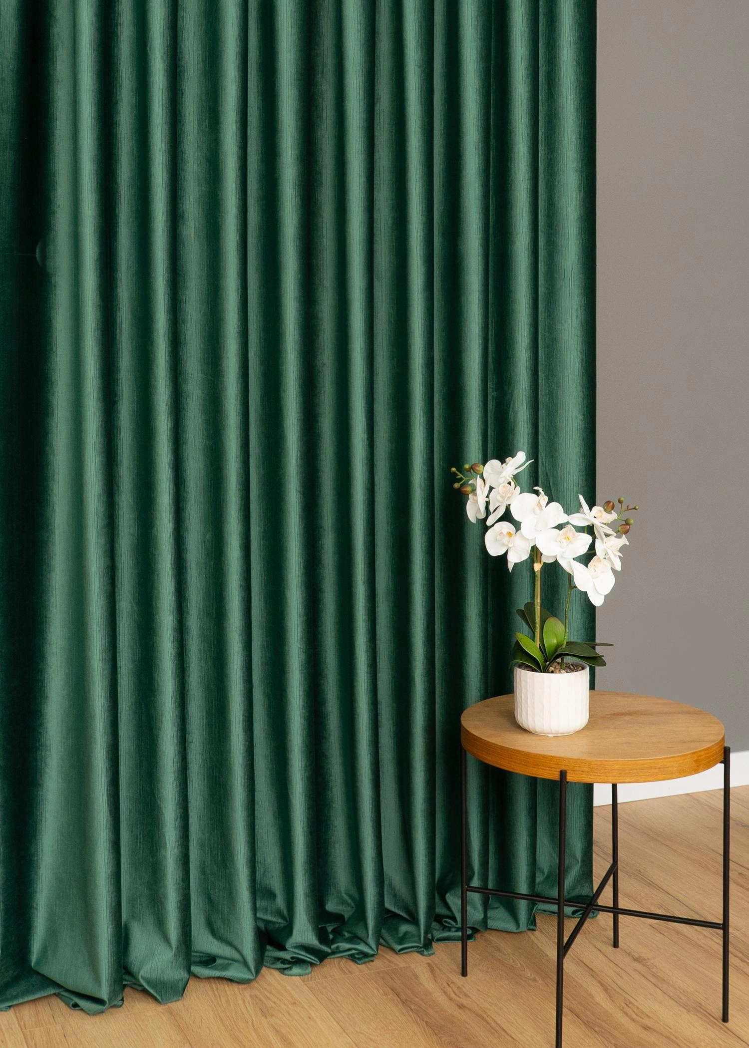 Tkanina zasłonowa VELVET EDEN prążkowana / wysokość 280cm / kolor 17 ciemna zieleń butelkowa