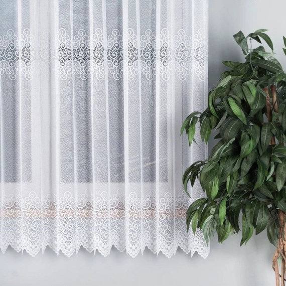 Firanka żakardowa z przędzy nabłyszczanej. Jest w najlepszym gatunku, charakteryzuje sie dużą przepuszczalnością śwatła i powietrza.