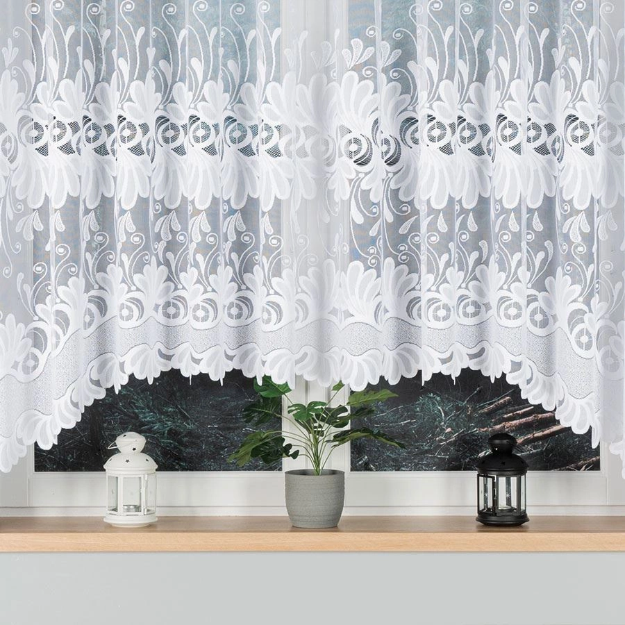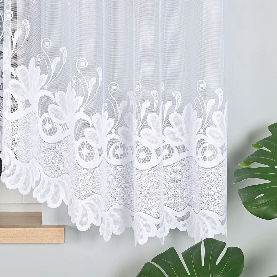 W ofercie sklepu internetowego Firantex.pl nie mogło zabraknąć popularnych firan żakardowych ze wzorem. Nasza ozdobna firana do kuchni to przykład na to, że żakard nie wychodzi z mody i pięknie prezentuje się we wnętrzach. Nasza firana do kuchni została wykonana z wysokogatunkowego żakardu, który doskonale się układa. Dzięki zastosowaniu takiej dekoracji okiennej Twoja kuchnia zostanie rozświetlona. Prezentowany model posiada piękne roślinne zdobienia, co nadaje mu niebywałej oryginalności. Biała firana żakardowa to klasyczne rozwiązanie, które nada Twoim wnętrzom niepowtarzalnego klimatu.
