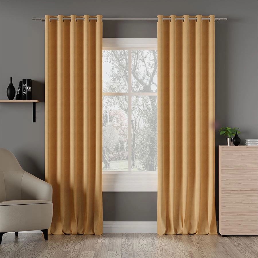 Jednokolorowa tkanina typu "welur", niezwykle miła i przyjemna w dotyku. Jest miękka i lejąca, bardzo dobrze się układa, idealna na zasłony, obicia, poszewki itp.
